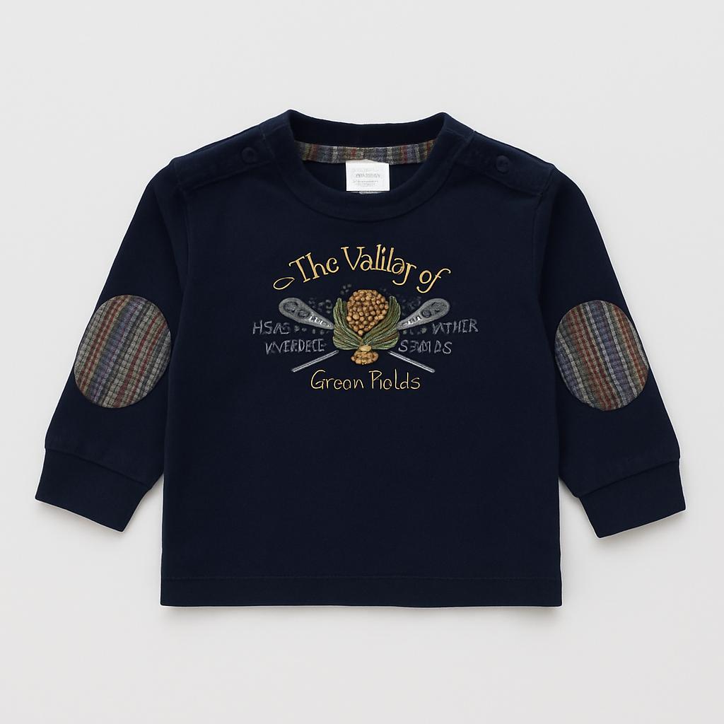 Questo adorabile maglione a maniche lunghe è perfetto per le giornate fresche! Realizzato in morbido cotone blu navy, presenta simpatiche toppe a quadro sulle maniche e un design accattivante con la scritta "The Valley of Green Fields". Le rifiniture a quadri all'interno del colletto aggiungono un tocco di stile e vivacità. Nonostante sia un capo di seconda mano, si presenta in ottime condizioni e pronto per essere indossato da un piccolo esploratore. Un must-have per un look casual e trendy!