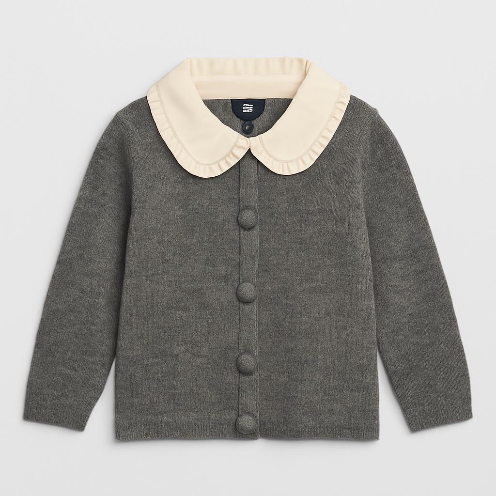 Questo adorabile cardigan grigio è un capo unico dal fascino vintage, perfetto per le piccole eleganti! Realizzato in un morbido tessuto, offre comfort e calore. La delicata eamp; colletto in tonalità crema con bordino arricciato aggiunge un tocco di originalità e stile. Concludendo con bottoni frontali, questo cardigan è ideale per completare outfit chic e casual. Usato ma in ottime condizioni, è pronto per accompagnare la tua piccola in tante avventure! Una scelta perfetta per un look sofisticato e comodo!