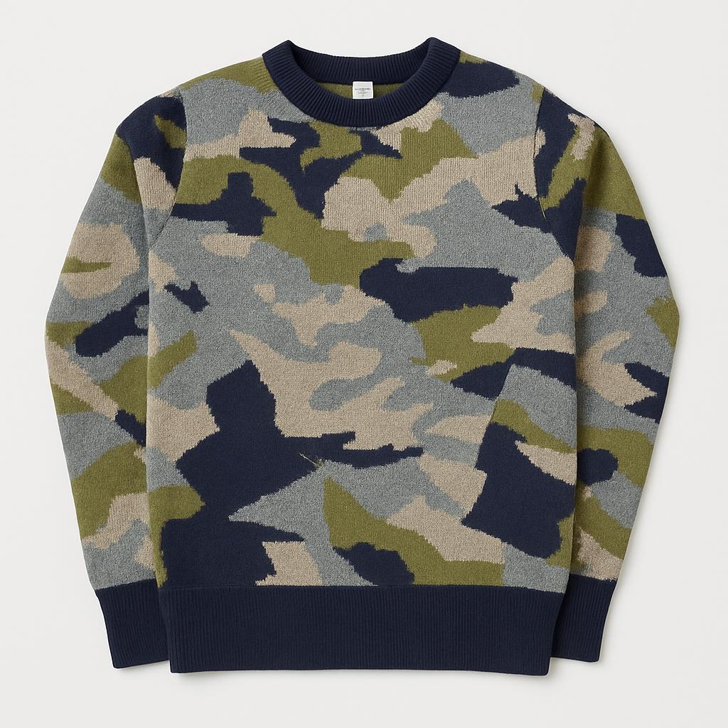 Questo originale maglione con motivo camouflage è perfetto per i piccoli esploratori! Realizzato in morbido materiale, offre comfort e calore durante le giornate più fresche. I toni del verde, blu e grigio creano un look avventuroso e trendy, mentre il colletto a giro e le maniche lunghe assicurano una vestibilità comoda e versatile. Nonostante sia un capo usato, si presenta in ottime condizioni, pronto per accompagnare il tuo bimbo nelle sue nuove avventure quotidiane! Un must-have per chi ama il fashion con un tocco di audacia!