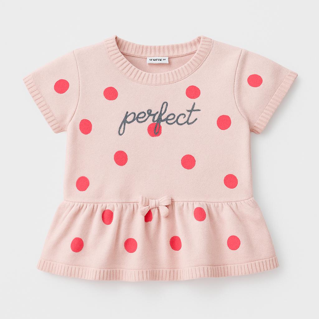 Questa adorabile maglietta di colore rosa con pois rossi è un vero sogno per le piccole fashioniste! Il morbido cotone la rende super comoda, mentre il motivo “perfect” sul petto aggiunge un tocco di dolcezza e allegria. Il design con il suo orlo arricciato e le maniche corte garantisce un look giocoso, perfetto per le giornate di gioco e le avventure estive. Anche se è un capo usato, si presenta in ottime condizioni, pronta per far brillare il guardaroba della tua bimba! Un vero must-have per chi ama sentirsi speciale!