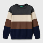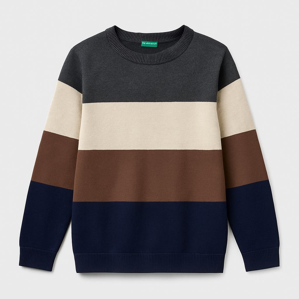 Questo delizioso maglione a righe per bambini è perfetto per le giornate fresche! Realizzato in un morbido tessuto, offre comfort e calore. Le tonalità di grigio, beige e blu scuro creano un abbinamento elegante e giocoso. Il design a maniche lunghe e il colletto arrotondato garantiscono una vestibilità comoda e rilassata, ideale per avventure in outdoor o semplici momenti di svago. Nonostante sia un capo usato, si presenta in ottime condizioni, pronto per essere indossato da un piccolo esploratore! Un'aggiunta versatile e stilosa per il guardaroba autunnale!