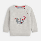 Questo adorabile maglione grigio chiaro è perfetto per tenere al caldo i piccoli durante le fresche giornate invernali! Realizzato in un morbido tessuto, presenta un divertente ricamo di un simpatico koala che si arrampica su una canna di zucchero. I dettagli in rosso delle cuciture e dei bottoni sulle spalle aggiungono un tocco vivace e festoso. Con le maniche lunghe e il collo a giro, offre comfort e stile per ogni avventura. Nonostante sia un capo usato, è in ottime condizioni e pronto per illuminare il guardaroba del tuo bambino! Un must-have per gli amanti dei peluche e delle giornate invernali!
