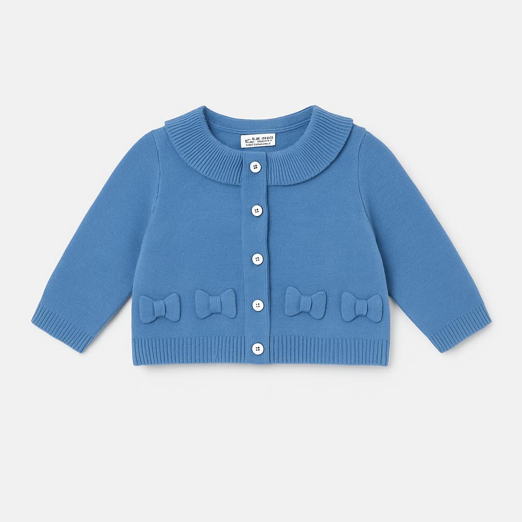 Questo adorabile cardigan azzurro sarà un'aggiunta perfetta al guardaroba della tua piccola! Realizzato in morbido cotone, presenta un colletto elegante e dettagli in delicati fiocchi che lo rendono unico. Le maniche lunghe garantiscono calore e comfort, ideale per le fresche giornate primaverili o autunnali. Nonostante sia un capo usato, è in ottime condizioni e pronto per essere indossato in ogni occasione. Un must-have per le piccole che amano vestire con stile!
