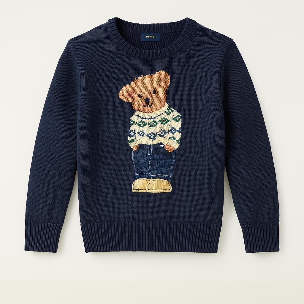 Questo adorabile maglione blu scuro è perfetto per tenere caldo il tuo piccolo! Caratterizzato da un simpatico motivo con orsetto ricamato, indossa un maglione a girocollo e un paio di pantaloni. I dettagli in verde e bianco aggiungono un tocco di allegria, rendendolo ideale per l'inverno. Morbido e confortevole, questo maglione è in buone condizioni e rappresenta un'ottima scelta per un look casual e giocoso, perfetto per le avventure quotidiane! Un must-have nel guardaroba di ogni bambino.