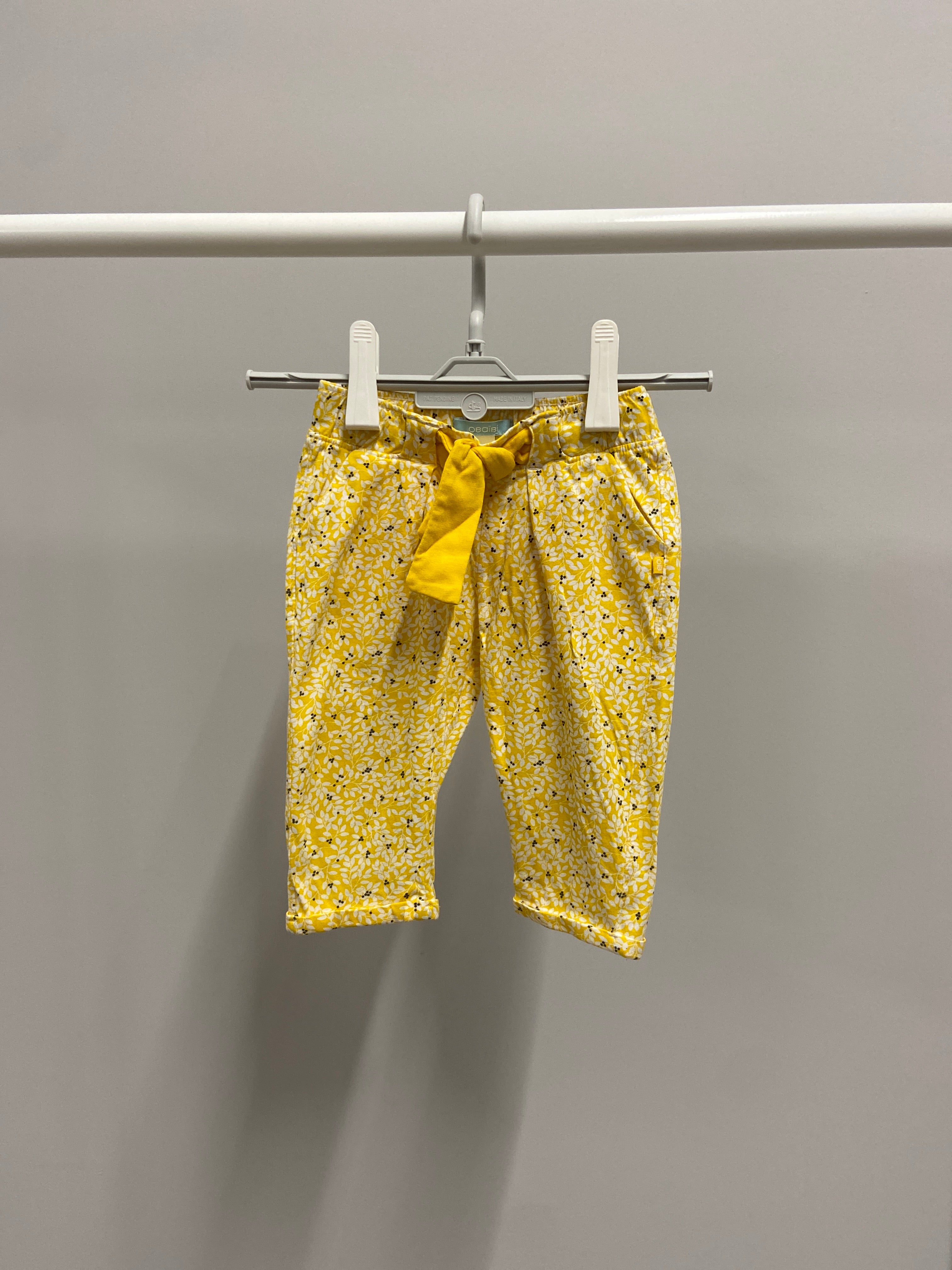 Questi adorabili pantaloni gialli sono perfetti per le piccole pioniere della moda! Realizzati in un morbido tessuto, presentano un motivo floreale vivace che evoca il sole e la gioia. La vita elastica con un grazioso fiocco contribuisce al comfort e al fit perfetto, permettendo libertà di movimento durante le avventure quotidiane. Ideali per giochi all'aperto o per un look casual chic, questi pantaloni usati sono in ottime condizioni e pronti a portare colore e allegria nel guardaroba della tua bimba!