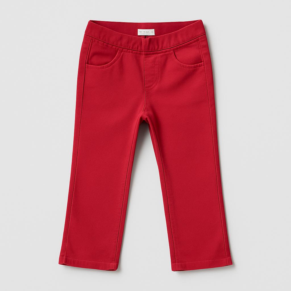 Questi pantaloni in vivace rosso corallo saranno un'aggiunta fantastica al guardaroba della tua piccola! Realizzati in un morbido tessuto elasticizzato, offrono comfort e libertà di movimento. Il taglio slim si adatta perfettamente al corpo, mentre la vita alta con elastico assicura una vestibilità sicura per ogni avventura. Perfetti per un pomeriggio di giochi o un'uscita in famiglia, questi pantaloni usati si presentano in ottime condizioni. Un capo versatile e trendy che farà sentire la tua bambina alla moda in ogni occasione!