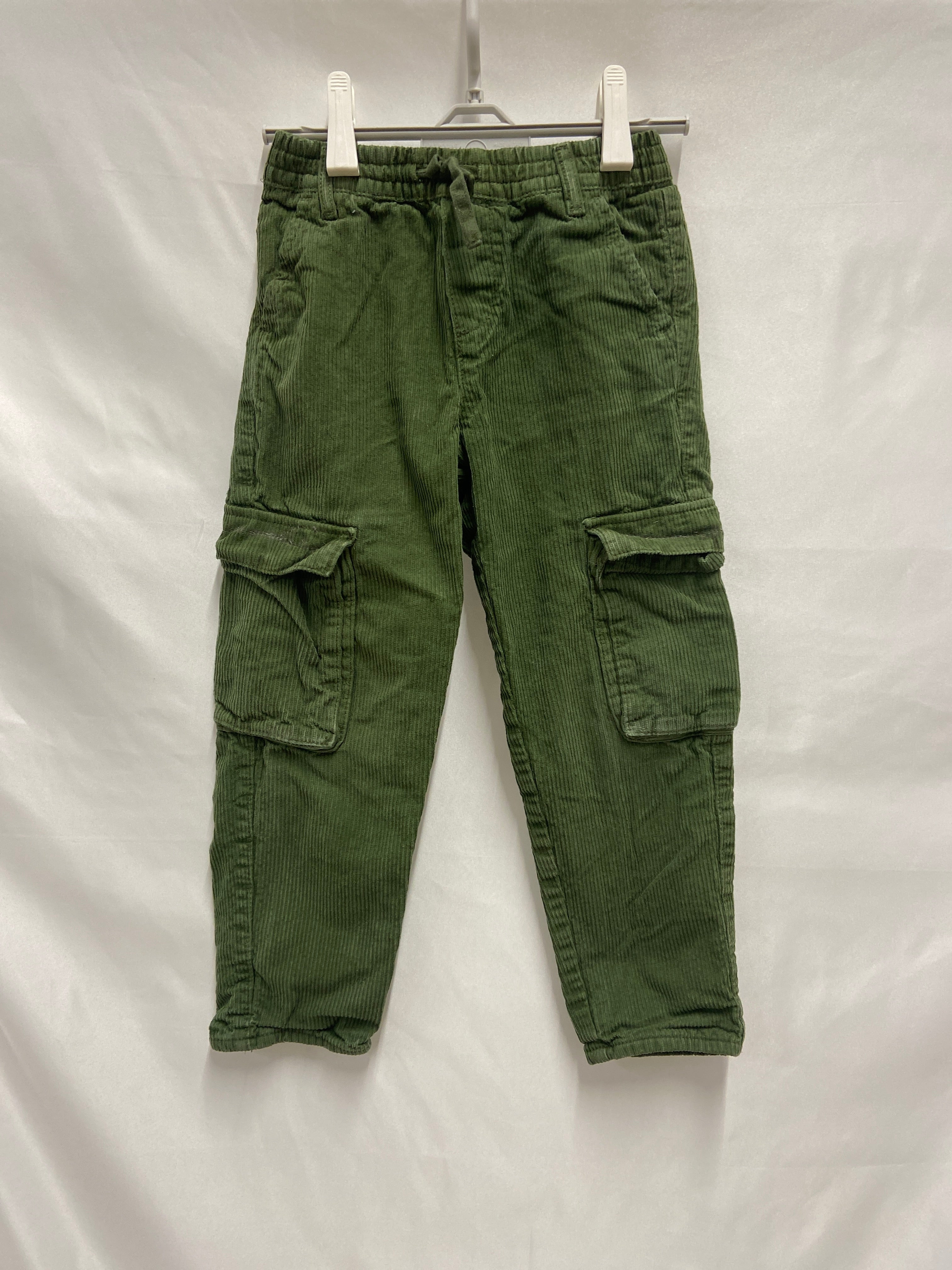 Questi pantaloni cargo verdi in velluto a coste sono il capo perfetto per i piccoli esploratori! Con tasche laterali funzionali e un comodo elastico in vita, offrono praticità e stile. Il tessuto morbido e caldo li rende ideali per le avventure all'aperto o per un look casual ma trendy. Nonostante siano usati, si presentano in ottime condizioni, pronti per nuova avventure! Un must-have per i bambini che amano muoversi liberamente senza rinunciare al comfort!