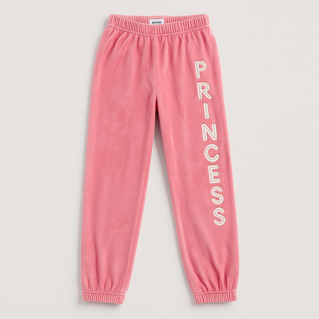 Questi adorabili pantaloni in velluto rosa sono perfetti per le piccole principesse! Morbidi e confortevoli, presentano la scritta "PRINCESS" in eleganti lettere bianche lungo il lato, aggiungendo un tocco di glam. Il tessuto caldo e leggermente elastico assicura libertà di movimento durante il gioco. Con la vita elasticizzata e i polsini, assicurano una vestibilità sempre perfetta. Nonostante siano usati, sono in ottime condizioni e pronti a inseguire sogni luminosi! Un must-have per il guardaroba di ogni bambina!