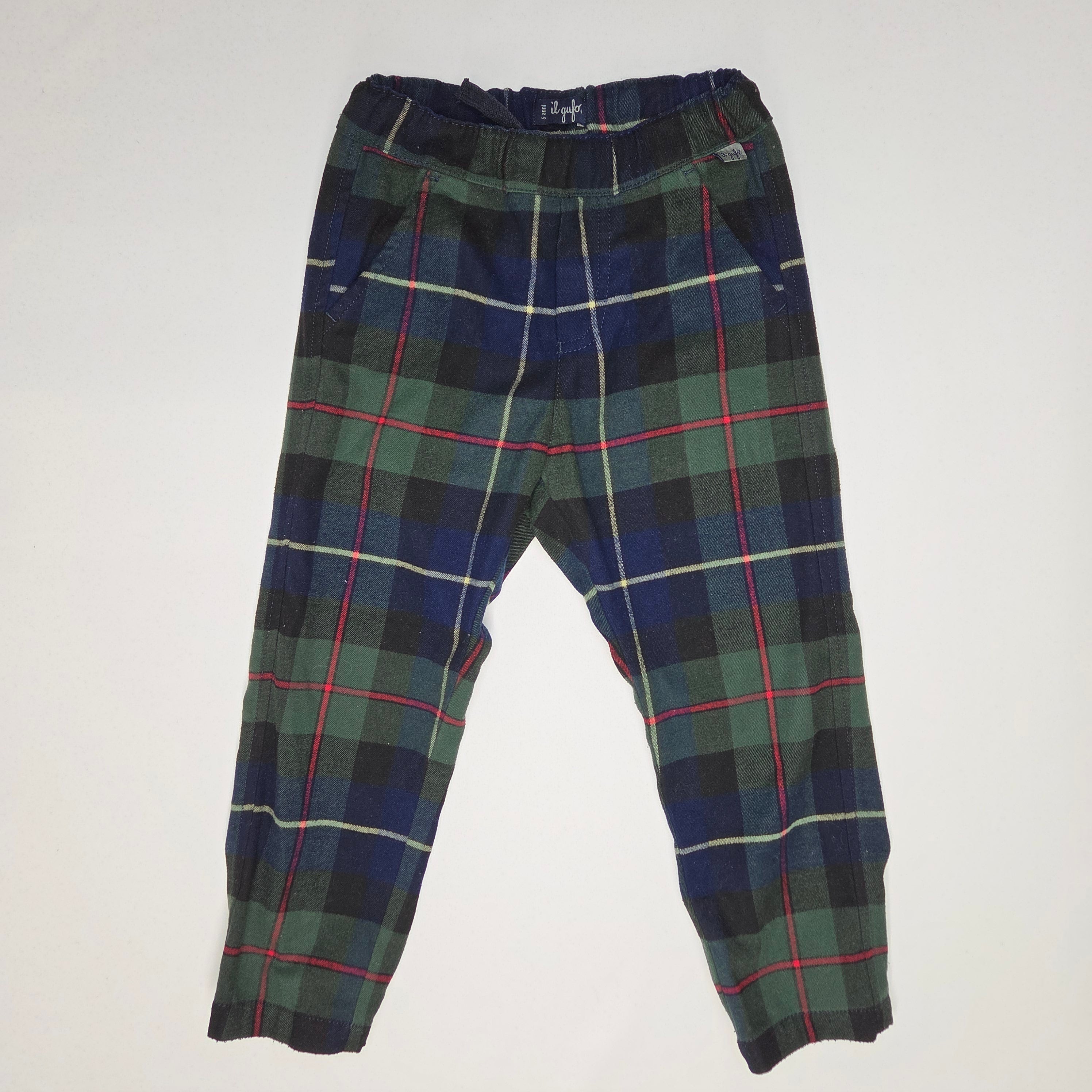 Questi pantaloni a scacchi, dal carattere avventuroso, sono perfetti per i piccoli esploratori! Realizzati in un morbido cotone, offrono comfort e calore, ideali per le giornate più fresche. Il design a righe verde, blu e rosso conferisce un tocco di divertimento e stile. Con un comodo elastico in vita e tasche pratiche, sono perfetti per riporre piccoli tesori. Nonostante siano un capo usato, la loro qualità è ottima e pronti per nuove avventure! Un must-have per un look casual e trendy!