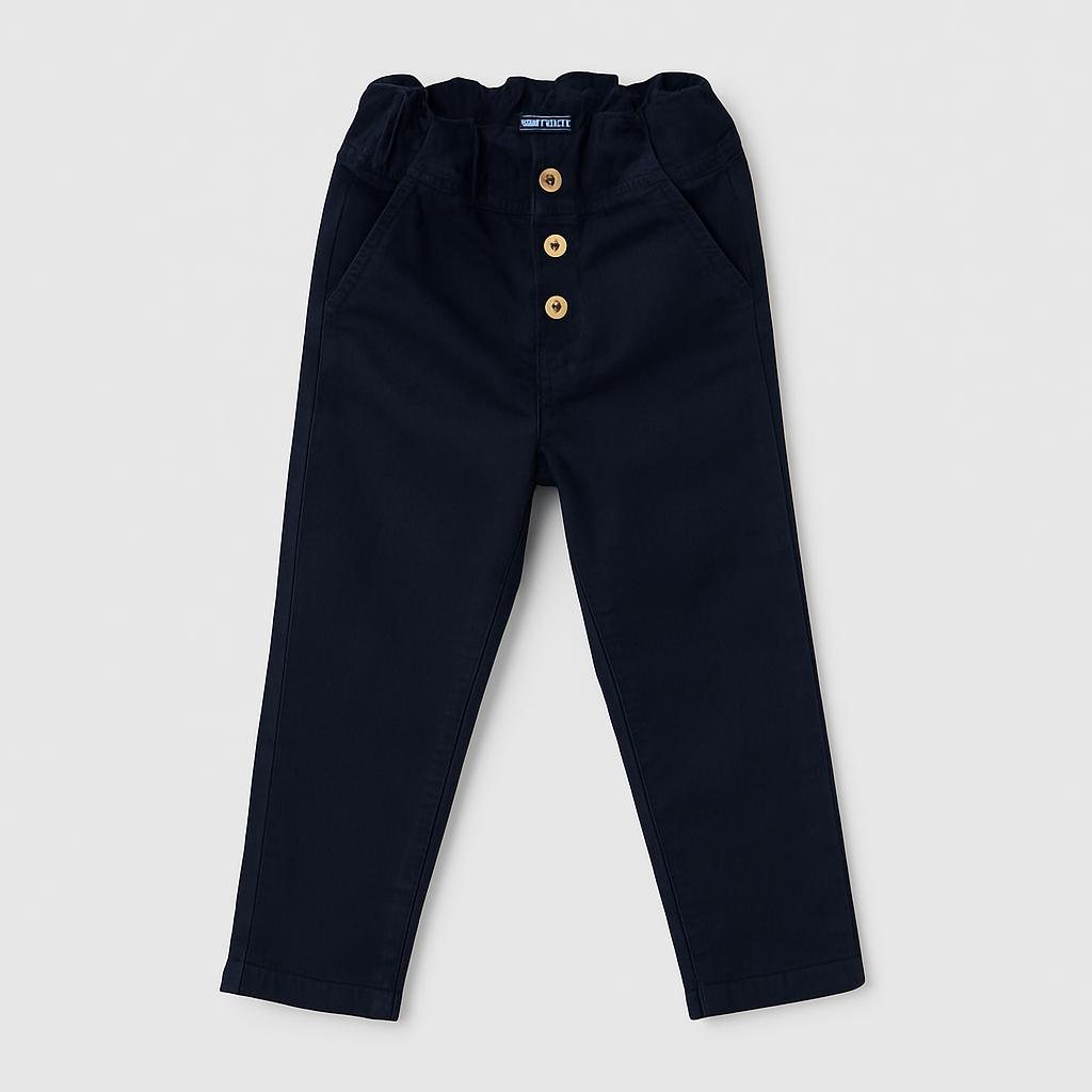Questi adorabili pantaloni blu scuro sono un must-have per ogni piccolo esploratore! Realizzati in un comodo tessuto cotone, presentano una fascia elastica in vita per garantire una vestibilità perfetta. I dettagli con i bottoni sul davanti aggiungono un tocco di stile divertente e originale. Le gambe leggermente svasate e il design pratico li rendono ideali per ogni occasione, dai giochi all'aperto alle uscite in famiglia. Nonostante siano usati, sono in ottime condizioni e pronti a portare comfort e allegria nel guardaroba del tuo bambino!