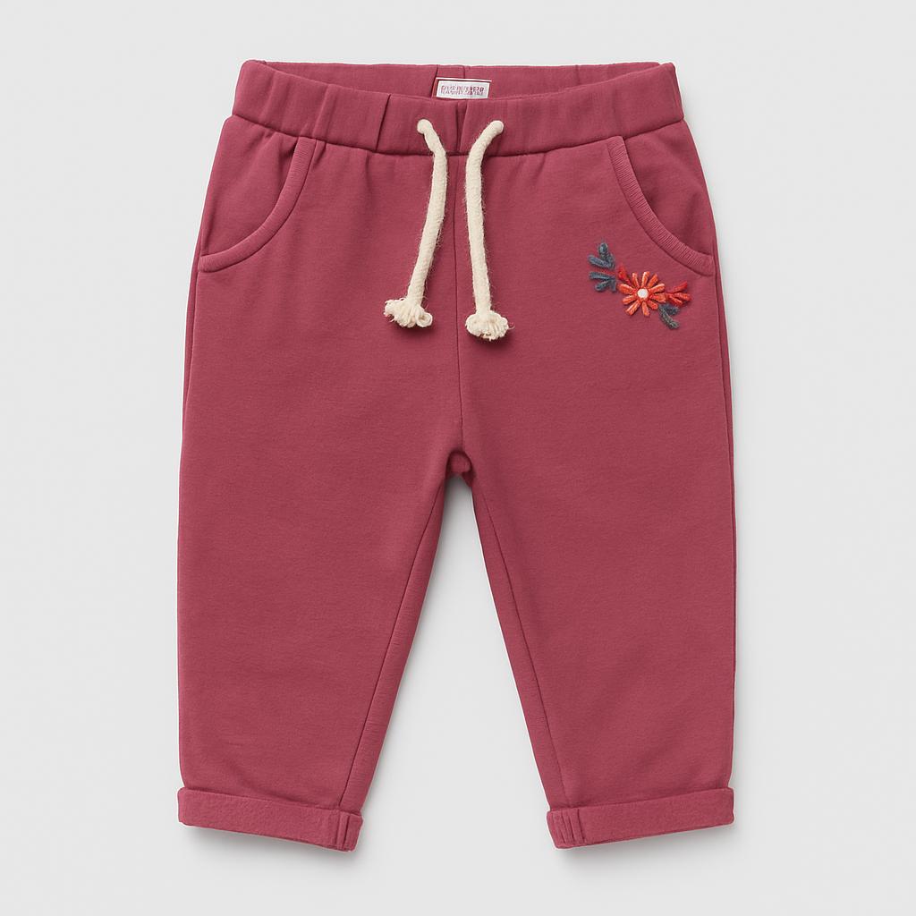 Questi adorabili pantaloni in morbido cotone color prugna sono perfetti per la tua piccola! Con una comoda vita elasticizzata e un grazioso cordoncino regolabile, garantiscono libertà di movimento durante il gioco. Le tasche frontali aggiungono un tocco pratico e il ricamo floreale sul lato destro regala un accento di dolcezza. Nonostante siano usati, si presentano in ottime condizioni, ideali per completare un look casual e chic. Questi pantaloni saranno sicuramente il capo preferito della tua bimba per le avventure all'aperto!