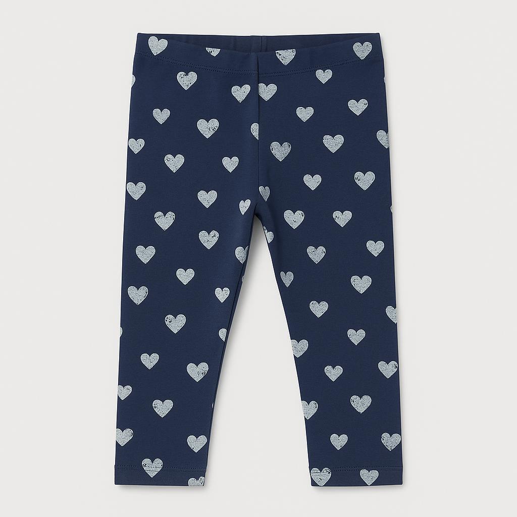 Questi adorabili leggings in morbido cotone blu navy sono perfetti per le piccole romantiche! Decorati con un dolce motivo di cuoricini bianchi, aggiungono un tocco di poesia a qualsiasi outfit. Il comodo taglio aderente e l’elastico in vita garantiscono libertà di movimento, ideali per correre e giocare. Anche se sono un capo usato, si presentano in ottime condizioni e sono pronti a regalare comfort e stile per molte avventure! Un must-have nel guardaroba delle mini fashioniste!