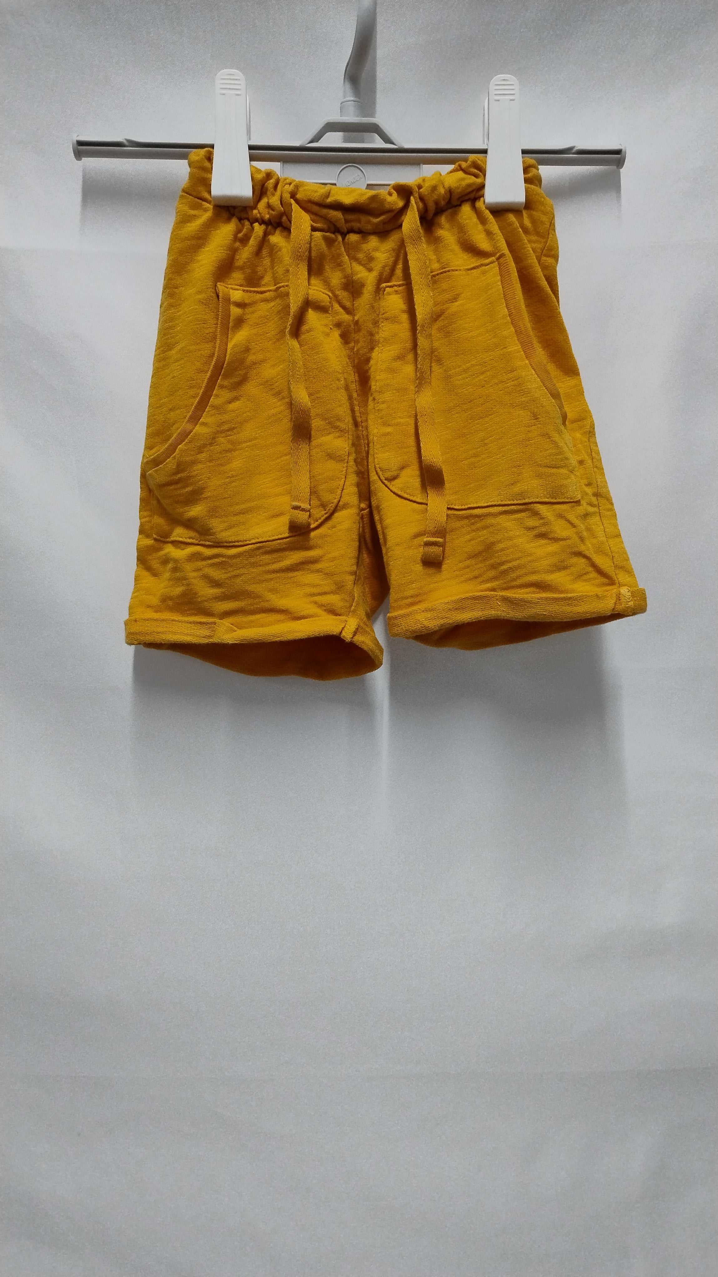 Questi adorabili pantaloni corti in un caldo color senape sono perfetti per le avventure estive dei piccoli esploratori! Realizzati in un morbido tessuto che garantisce comfort totale, presentano una comoda vita elastica con cordino per una vestibilità personalizzata. Le pratiche tasche frontali aggiungono un tocco di funzionalità e stile. Nonostante siano di seconda mano, questi shorts si presentano in ottime condizioni, pronti per essere indossati in giochi all'aperto o nei pomeriggi di relax. Un capo versatile per il guardaroba dei tuoi bambini!