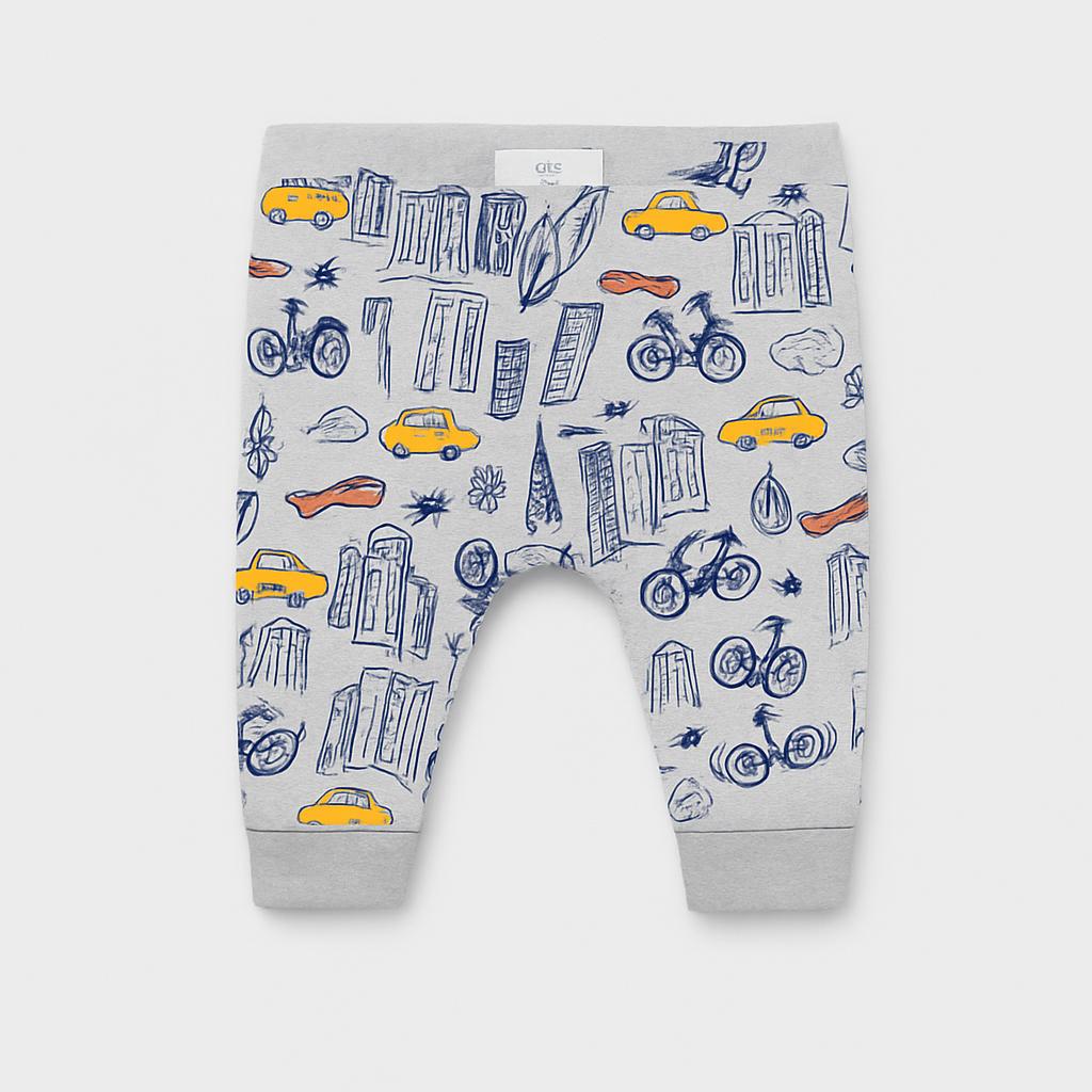 Questi adorabili pantaloni grigi sono un'aggiunta perfetta al guardaroba del tuo piccolo! Realizzati in morbido cotone, presentano un divertente motivo che ritrae taxi, biciclette e palazzi, stimolando la fantasia dei bambini. La vita elastica assicura una vestibilità comoda, mentre le caviglie elastiche rendono il tutto pratico e alla moda. Nonostante siano capi usati, sono in ottime condizioni e pronti per accompagnare il tuo bambino nelle sue avventure quotidiane. Ideali per giochi e momenti di relax, questi pantaloni trasmettono allegria e stile!