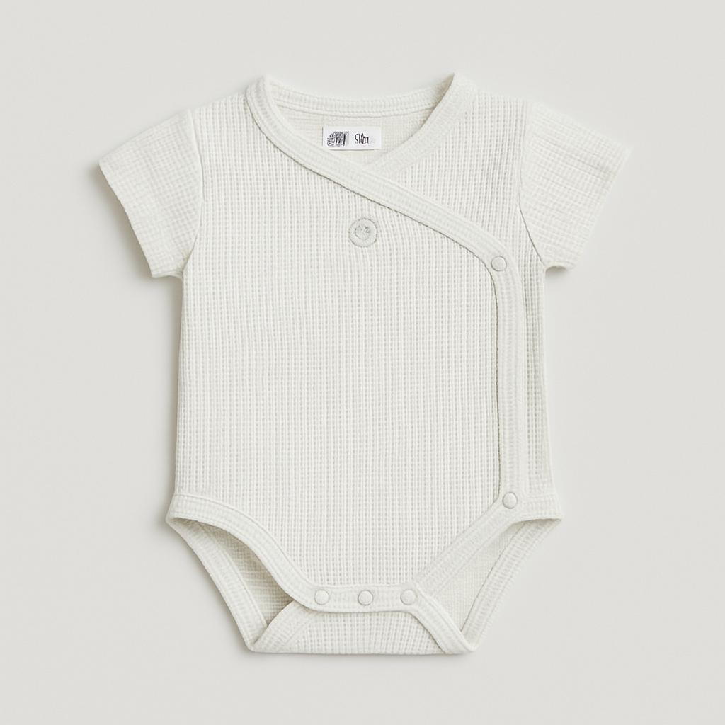 Questo adorabile body in cotone bianco è un capo essenziale per il guardaroba del tuo bimbo! Con un delicato motivo a righe e una pratica chiusura a pressione, offre comfort e facilità di vestizione. Le maniche corte lo rendono perfetto per le belle giornate, mentre il suo design semplice e versatile si adatta a qualsiasi outfit. Nonostante sia un indumento usato, si presenta in ottime condizioni, pronto a coccolare il tuo piccolo con dolcezza e stile. Un must-have per ogni neonato!