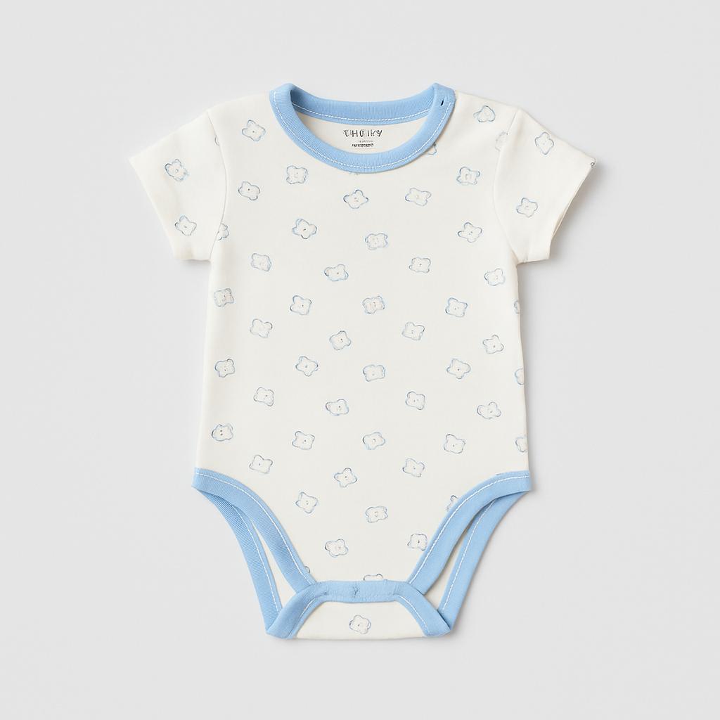 Questo adorabile body con maniche corte è l'ideale per i più piccini! Realizzato in morbido cotone, offre comfort e delicatezza sulla pelle sensibile del tuo bambino. La base bianca è decorata con dolci orsetti stilizzati, mentre i dettagli azzurri donano un tocco di freschezza e tenerezza.