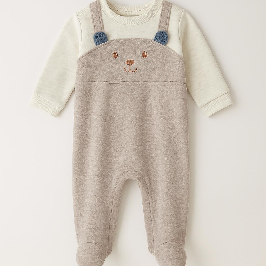 Questo adorabile tutù di pile grigio è perfetto per i piccoli esploratori! Con una parte superiore in jersey morbido e un simpatico motivo da orsetto ricamato, trasmette dolcezza e calore. Le spalline ad incrocio e le maniche a contrasto aggiungono un tocco di stile, mentre la chiusura pratica facilita il cambio. Ideale per le giornate fresche o per coccole a casa, questo complesso è un caposaldo del guardaroba dei neonati. Nonostante sia usato, è in ottime condizioni, pronto a regalare sorrisi e comfort!