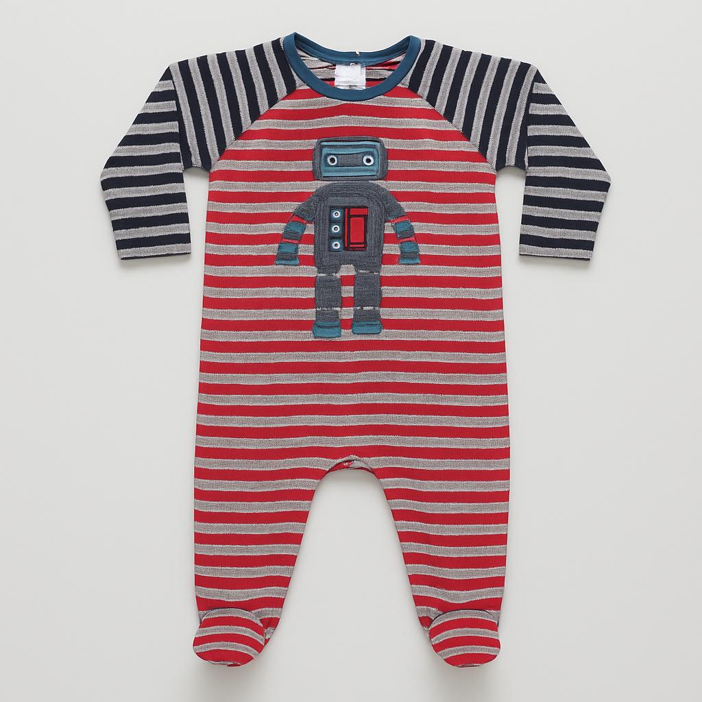 Questo adorabile pigiama intero a righe è perfetto per sognare in grande! Realizzato in morbido tessuto, offre comfort e calore durante le notti più fredde. Le righe blu e rosse accentuano il design giocoso, mentre il simpatico robot ricamato sul petto aggiunge un tocco di fantasia. Con maniche lunghe e piedi coperti, questo pigiama è ideale per i piccoli avventurieri. Nonostante sia usato, è in ottime condizioni e pronto per accompagnare tante notti di sogni stellari! Una scelta perfetta per favorire un sonno sereno e stiloso.