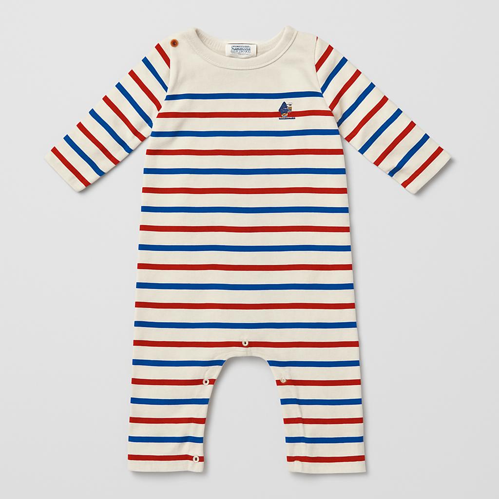 Questo adorabile pagliaccetto a righe di marca offre un irresistibile stile marinaro! Realizzato in morbido cotone, il design presenta strisce blu e rosse su uno sfondo bianco, che evocano gioia e freschezza. Con maniche lunghe e una pratica apertura con bottoni, è perfetto per il cambio rapido. La piccola applicazione a forma di barca aggiunge un tocco incantevole, rendendolo ideale per le avventure quotidiane. Nonostante sia usato, il capo è in ottime condizioni e assicura comfort e stile per ogni piccolo esploratore!