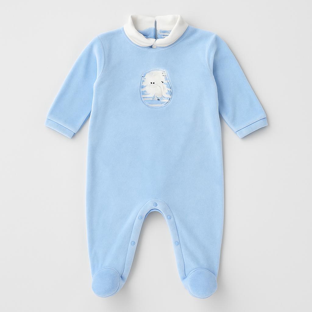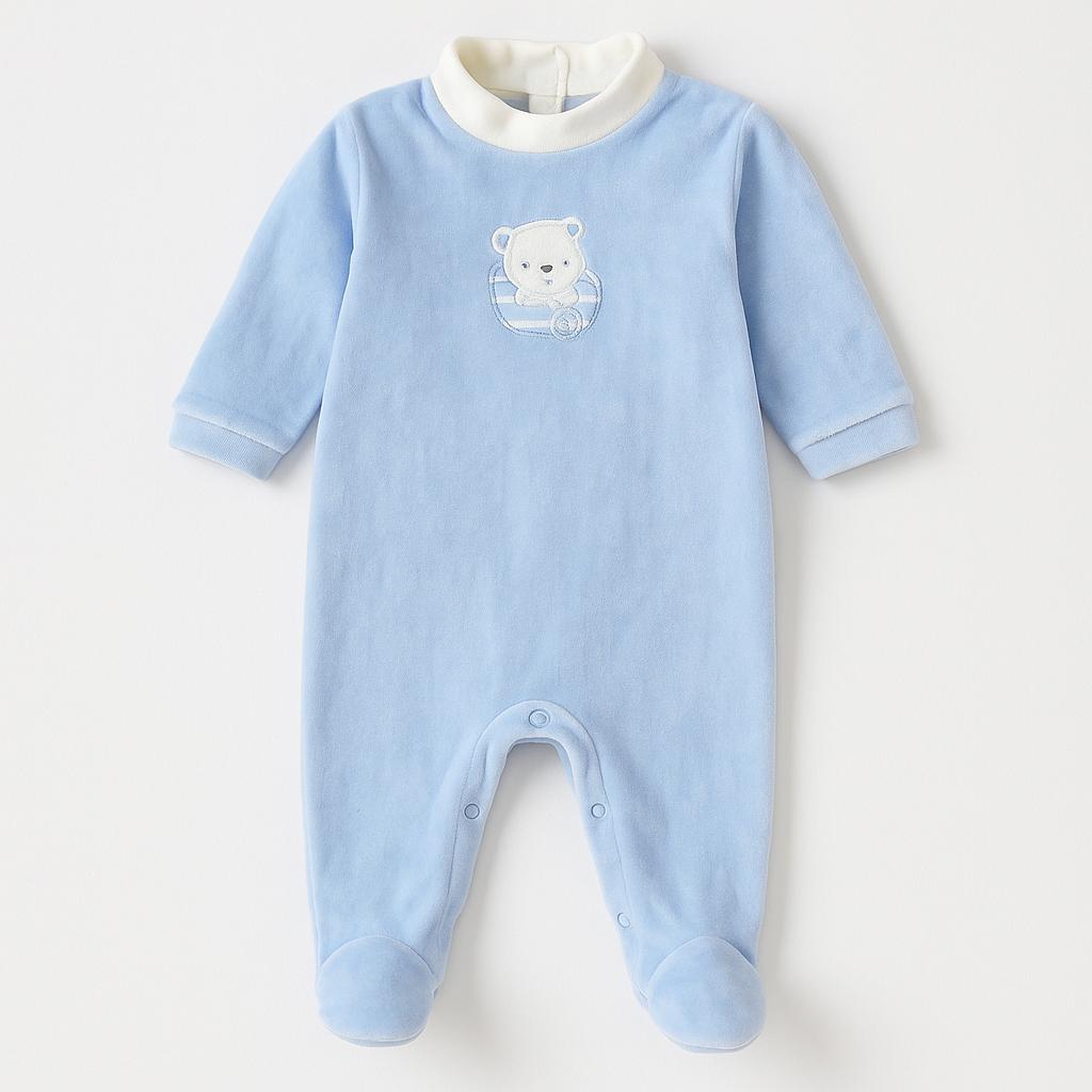 Questo adorabile tutù azzurro è il perfetto abbinamento di comfort e dolcezza per il tuo piccolo! Realizzato in morbido materiale, è ideale per le notti tranquille e le giornate fresche. Il design presenta un simpatico ricamo di un orsacchiotto che aggiunge un tocco giocoso al look.