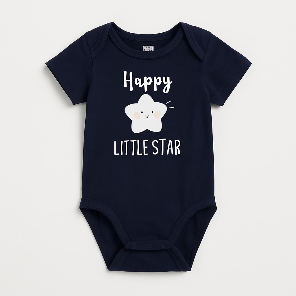 Questo adorabile body corto, nella tonalità blu navy, è perfetto per il tuo piccolo "happy little star"! Realizzato in morbido cotone, garantisce comfort e freschezza durante le calde giornate estive. La stampa gioiosa di una stella sorridente e la scritta "Happy Little Star" lo rendono un capo giocoso e simpatico, ideale per ogni occasione. Facile da indossare grazie alla pratica chiusura a scatto, questo body è un’ottima scelta per i tuoi momenti di gioco e confronto. Nonostante sia un capo usato, si presenta in ottime condizioni, pronto per far brillare il guardaroba del tuo bimbo!