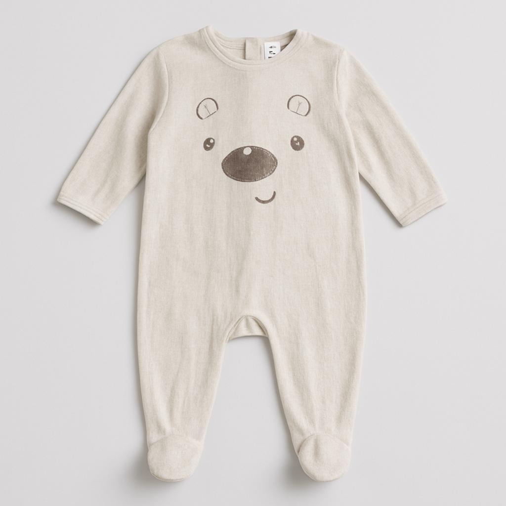 Questo adorabile pigiama intero a forma di orsetto farà sentire il tuo bimbo avvolto in un abbraccio caldo e coccoloso! Realizzato in morbido cotone, il pigiama è di un delicato colore crema e presenta un simpatico musetto di orso sul petto, che porterà un sorriso sul volto di ogni piccolo. Le maniche lunghe e i piedini integrati lo rendono perfetto per le notti fresche, assicurando comfort e calore.