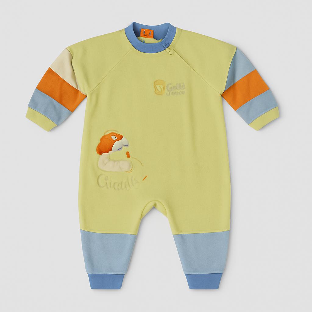 Questo adorabile pagliaccetto verde chiaro è perfetto per mantenere il tuo piccolo caldo e comodo! Realizzato in morbido cotone, presenta maniche a contrasto in blu e arancione che aggiungono un tocco di vivacità. La simpatica applicazione di un tenero orsacchiotto sul petto rende questo completino irresistibile. I bottoni sul collo facilitano il cambio, rendendolo pratico anche per i genitori. Nonostante sia un capo usato, si presenta in ottime condizioni, pronto per accompagnare ogni piccola avventura con stile e comfort! Un must-have per i neogenitori!