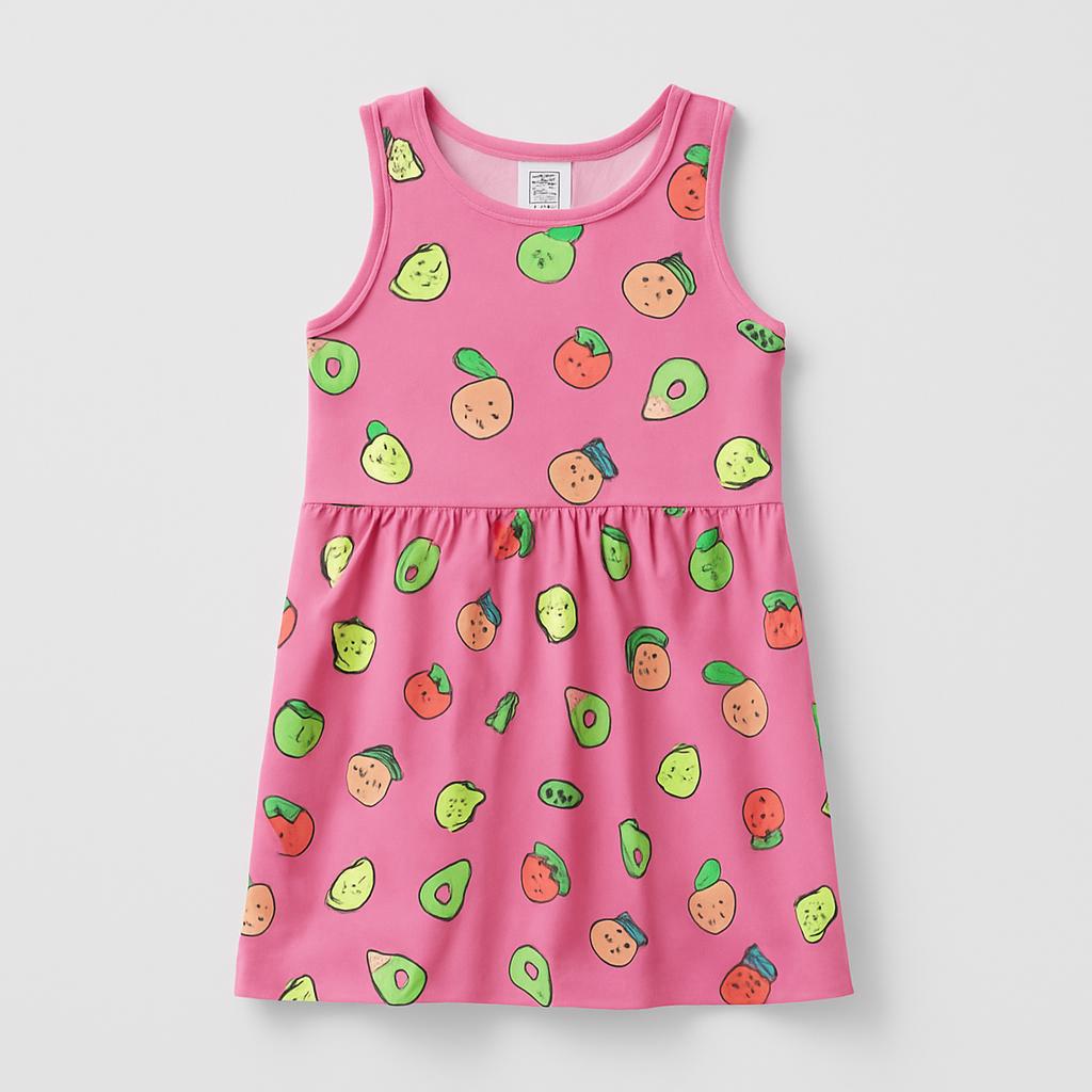 Questo adorabile vestito estivo è perfetto per le piccole amanti della frutta! Realizzato in morbido cotone, il suo vivace colore rosa è arricchito da un divertente motivo di frutti colorati, come mele e pere, che aggiunge un tocco di allegria. Il design senza maniche e la gonna ampia lo rendono ideale per corse e giochi nei caldi pomeriggi estivi. Nonostante sia un capo usato, si presenta in ottime condizioni e garantirà comfort e freschezza. Un must-have per le piccole fashioniste pronte a divertirsi con stile!