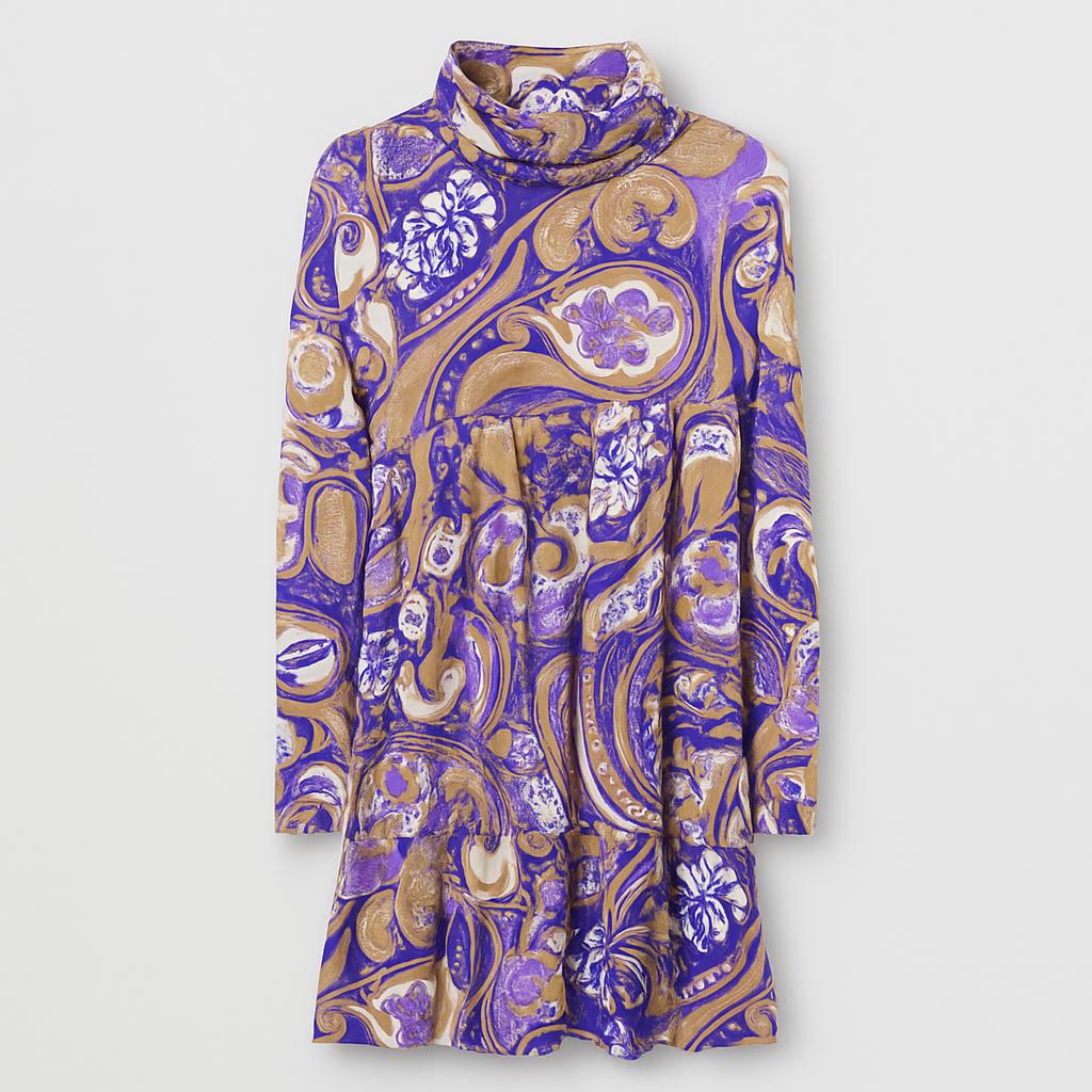 This adorable '70s-inspired dress will transform your little one's wardrobe into a riot of color and fantasy! Crafted from soft stretch fabric, it features a delightful floral print in shades of purple, gold, and white. The high neck adds a touch of originality, while the A-line cut and slightly wavy hem add movement to every step. Ideal for parties, playtime, and outings, this pre-owned dress is in excellent condition and ready for a little diva to wear! Don't miss out!