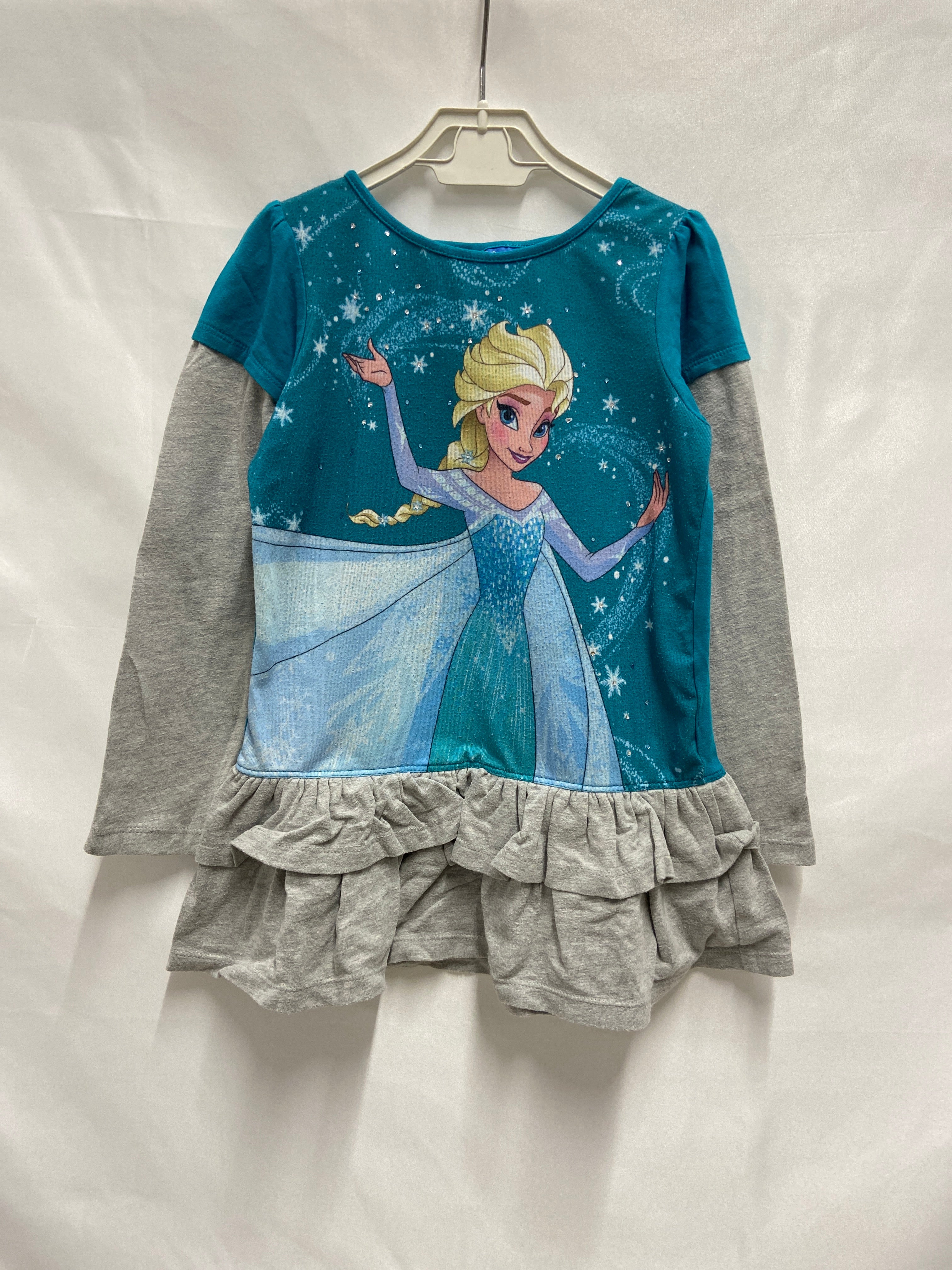 Questa incantevole tunica di Frozen è perfetta per le piccole fan di Elsa! Caratterizzata da un colorato design con la regina dei ghiacci sul fronte, è realizzata in un morbido tessuto blu e grigio. Il taglio a tunica, arricchito da un dolce volant sulla parte inferiore, aggiunge un tocco di eleganza e gioco. Le maniche lunghe garantiscono comfort e calore durante le avventure invernali. Nonostante sia usata, è in ottime condizioni, pronta a far sognare la tua piccola con magiche storie di ghiaccio e amicizia! Un capo must-have per il guardaroba di ogni giovane esploratrice!