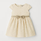 Questo incantevole abito di H&M è perfetto per le piccole principesse! Realizzato in una morbida e brillante stoffa color crema, il vestito è adornato da dettagli in pizzo che creano un effetto sofisticato e romantico. La cintura con fiocco satinato in vita aggiunge un tocco di eleganza, rendendolo ideale per occasioni speciali come matrimoni, feste o feste di compleanno. Le maniche corte e il taglio ampio garantiscono comfort e libertà di movimento per ballare e divertirsi. Nonostante sia usato, si presenta in ottime condizioni, pronto per far brillare la tua bimba in ogni occasione!