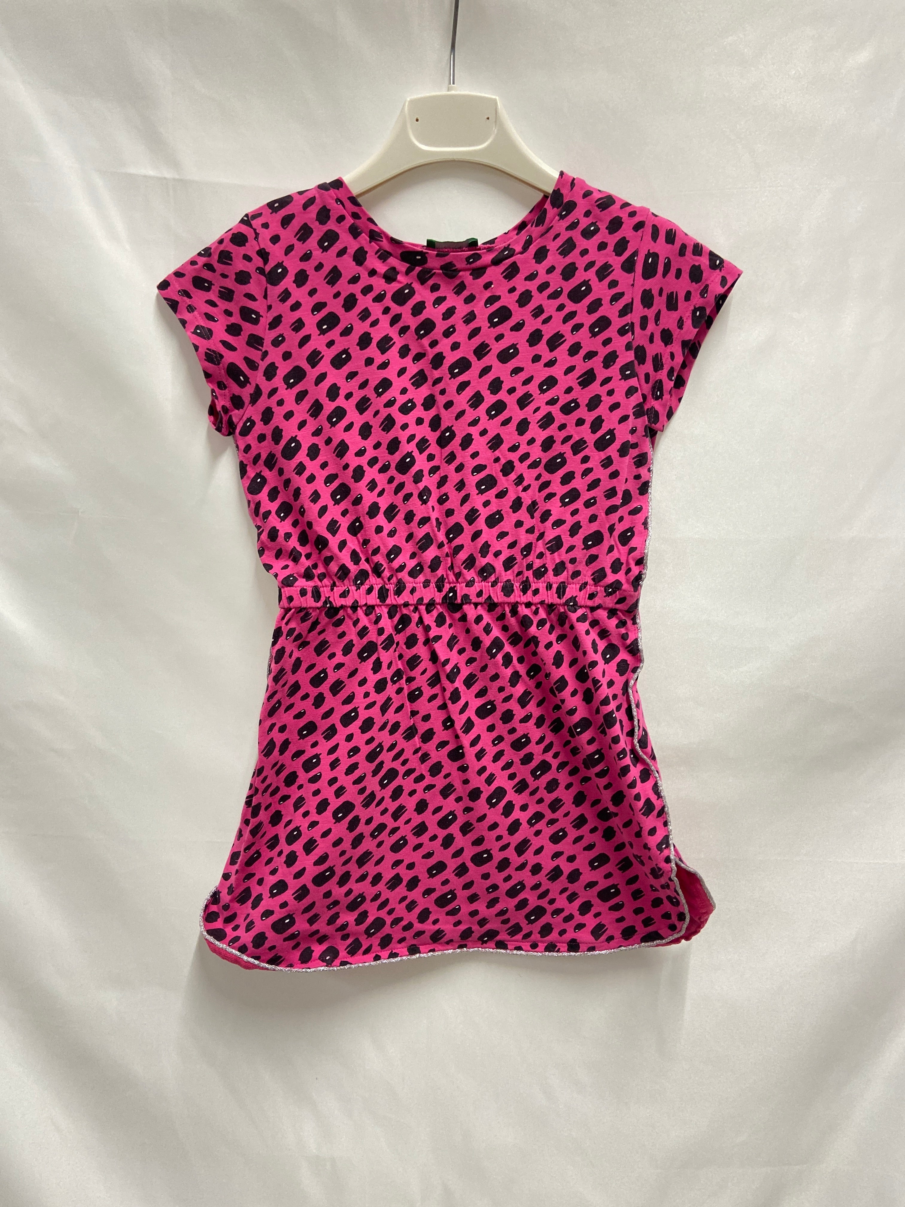 Questo adorabile vestitino in un vivace fucsia è il sogno di ogni piccola fashionista! Caratterizzato da un divertente motivo a macchie, aggiunge un tocco di originalità e allegria al guardaroba. La vita elastica assicura una vestibilità confortevole, perfetta per le avventure quotidiane e i giochi all'aperto. Le maniche corte lo rendono ideale per le giornate estive, mentre il taglio a trapezio dona libertà di movimento. Nonostante sia un capo usato, è in ottime condizioni e pronto a fare colpo! Un must-have per chi ama esprimere il proprio stile con un pizzico di creatività!