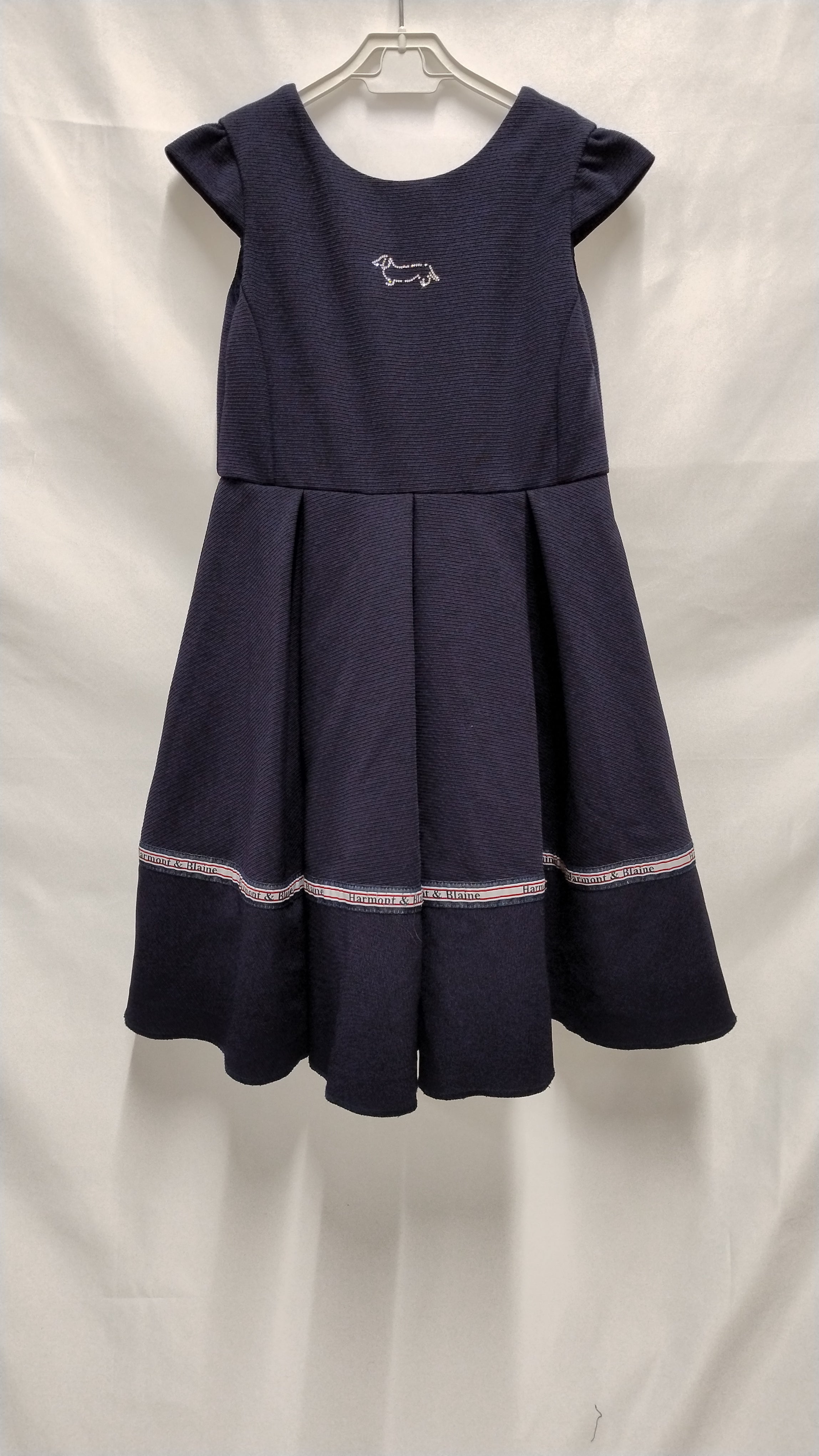 Questo elegante vestito blu navy è perfetto per ogni occasione speciale! Realizzato in una morbida e confortevole trama, presenta un design senza maniche con delicati volant che aggiungono un tocco di dolcezza. La sottile fascia decorativa in vita, impreziosita da dettagli colorati, dà un tocco di stile e unicità. Nonostante sia un capo usato, si presenta in ottime condizioni, pronto per essere indossato da una piccola principessa. Ideale per feste, matrimoni o semplicemente per sentirsi chic nella vita di ogni giorno!