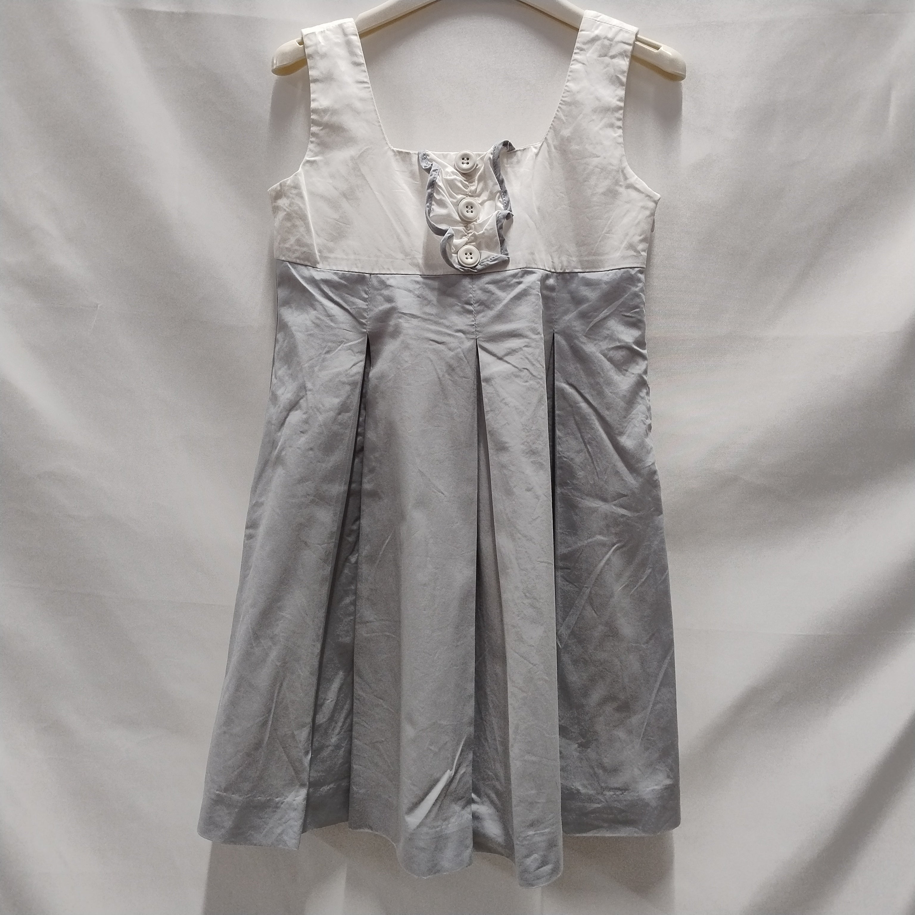 Questa elegante vestitino da bambina è perfetto per ogni occasione speciale! Con un vivace mélange di colori grigio chiaro e bianco, presenta dettagli raffinati come tre bottoncini decorativi sul davanti. Le spalline larghe e il taglio svasato garantiscono libertà di movimento, rendendolo ideale per ballare e divertirsi. Realizzato in un tessuto leggero e fresco, è un'ottima scelta per le giornate estive. Nonostante sia un capo usato, si presenta in ottime condizioni e porterà un tocco di classe al guardaroba della tua piccola!