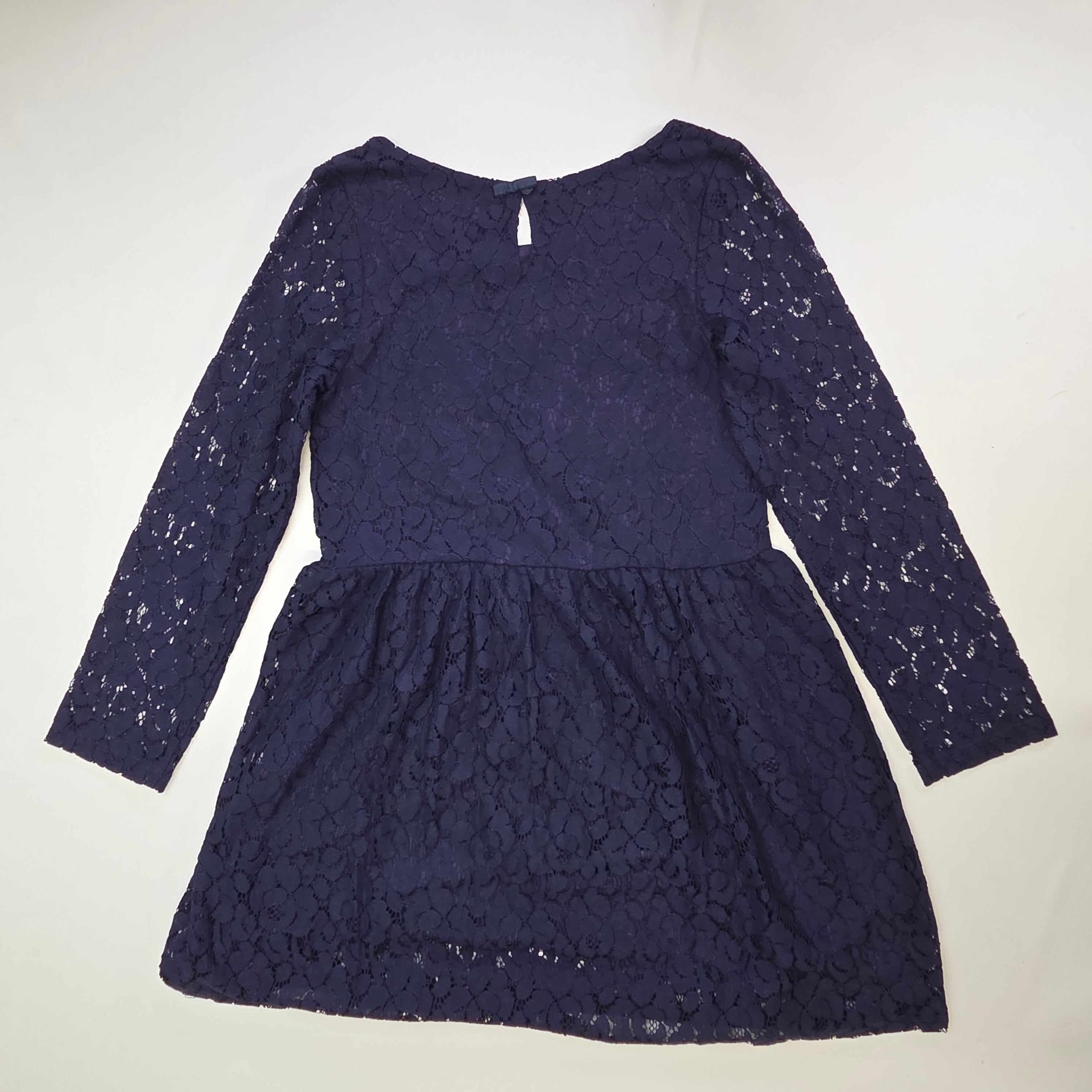 Questo incantevole vestito in pizzo blu notte è perfetto per le piccole principesse! Con le sue maniche lunghe e il classico scollo rotondo, aggiunge un tocco di eleganza a qualsiasi occasione. La delicata trama in pizzo crea un effetto sofisticato e romantico, rendendolo ideale per feste, compleanni o eventi speciali. La gonna ampia e leggera permette di muoversi liberamente, mentre la qualità del tessuto assicura comfort durante tutto il giorno. Nonostante sia un capo usato, si presenta in ottime condizioni, pronto per essere indossato e amato da una piccola fashionista! Un vero must-have nel guardaroba delle bimbe che vogliono brillare!