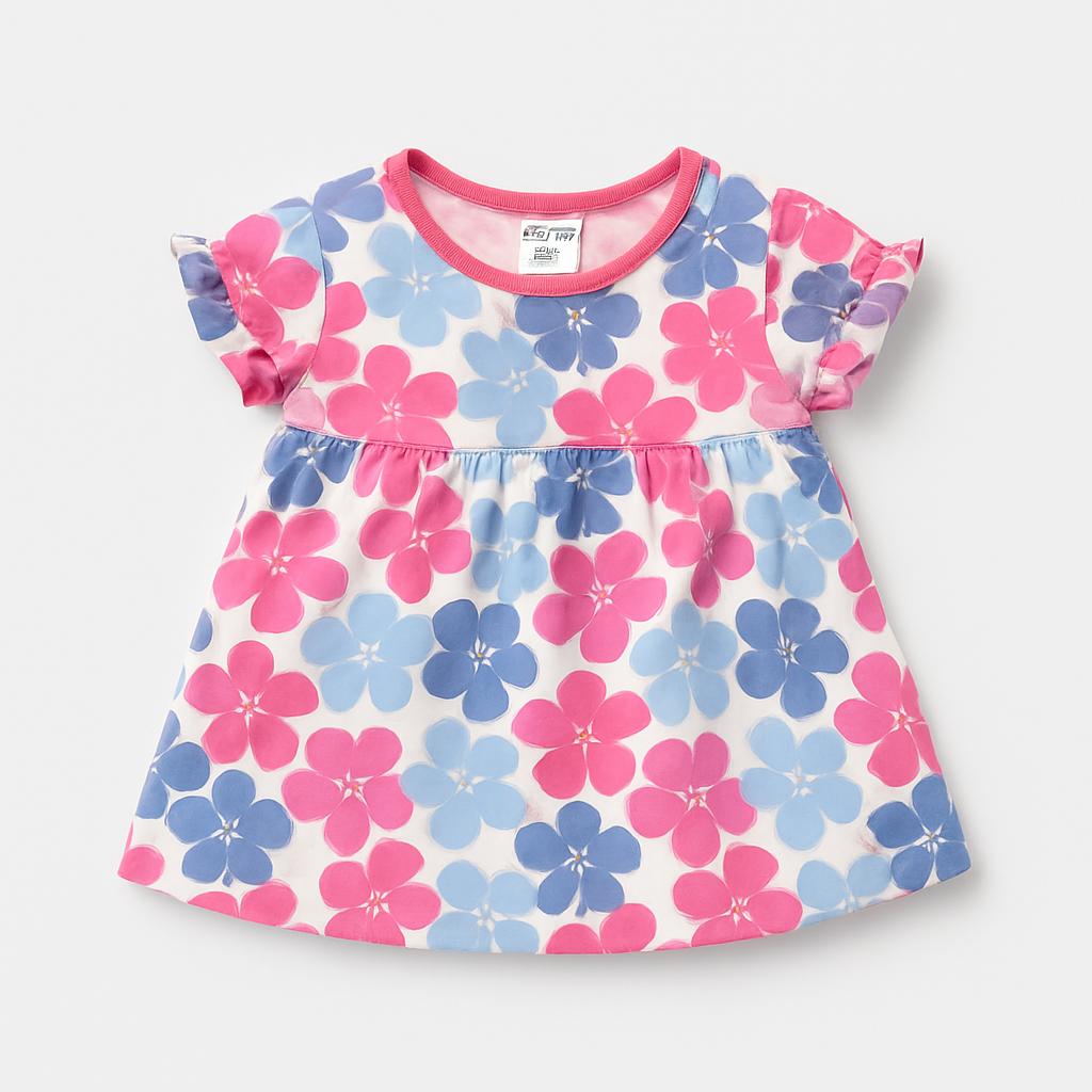 Questo adorabile vestitino estivo è perfetto per le piccole sognatrici! Realizzato in morbido cotone, presenta un vivace motivo floreale che sprigiona gioia e freschezza. Le delicate maniche a volant aggiungono un tocco di eleganza e movimento, rendendolo ideale per le giornate di sole.
