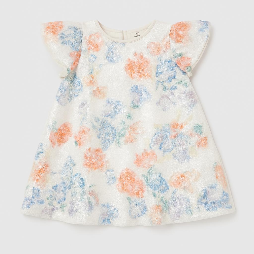 Questo incantevole vestito floreale è un vero sogno per le piccole principesse! Realizzato in morbido tessuto e arricchito da scintillanti paillettes, presenta un delizioso motivo di fiori variopinti che evoca gioia e vivacità. Il delicato colletto tonda e le maniche a farfalla aggiungono un tocco di eleganza e leggerezza, perfetto per ogni occasione speciale o per una festa di compleanno. Nonostante sia un capo usato, si presenta in ottime condizioni, pronto per essere indossato da una piccola fashionista. Un must-have per brillare in ogni momento!