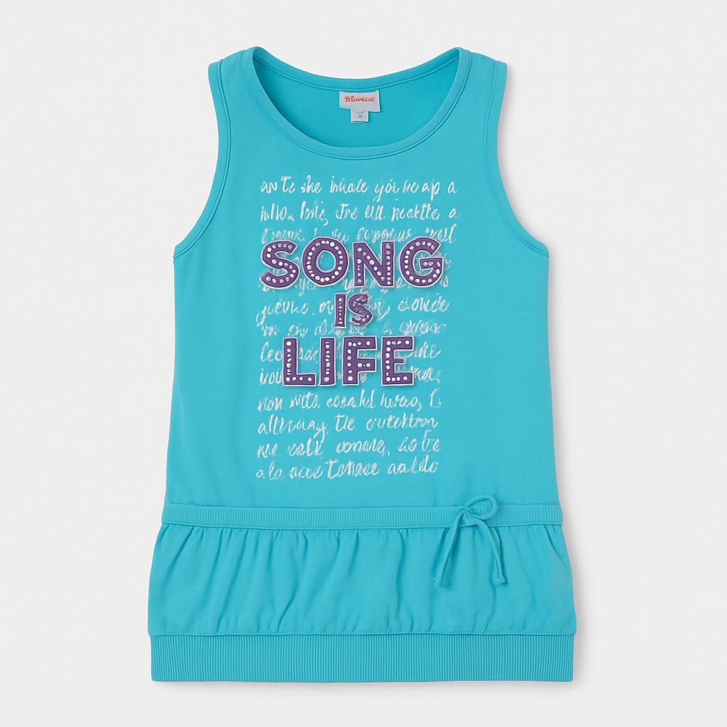 Questa incantevole canotta azzurra è un vero sogno per le piccole amanti della moda! Con il suo morbido tessuto in cotone, è ideale per le calde giornate estive. Sul fronte, un allegro messaggio che recita “Song is Life” scintilla in colorate paillettes, rendendola unica e giocosa. Il design con arricciatura sul fondo offre un tocco trendy, mentre la scollatura profonda aggiunge un pizzico di freschezza. Nonostante sia un capo usato, appare in ottime condizioni e pronta per nuove avventure. Una scelta perfetta per una giornata di divertimento e stile!