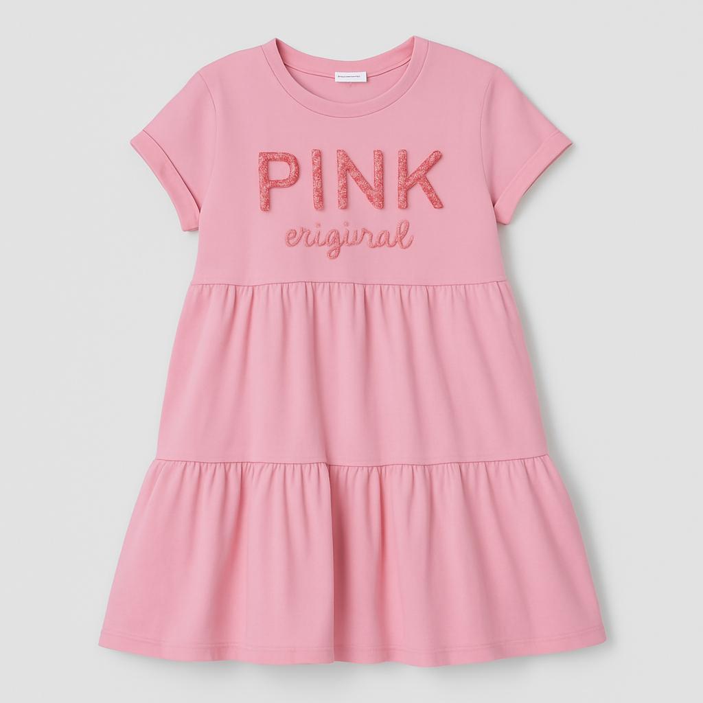 Questa adorabile vestitino firmato PINK è l'ideale per le piccole principesse! Realizzato in morbido cotone rosa, il suo design a balze dona un tocco di movimento e allegria. La scritta scintillante “PINK” sul davanti aggiunge un effetto luminoso e trendy, perfetto per ogni occasione. Le maniche corte e il taglio comodo lo rendono perfetto per le calde giornate estive o per un look casual da gioco. Nonostante sia un capo usato, si presenta in ottime condizioni, pronto a far brillare il guarda-robe della tua bimba!