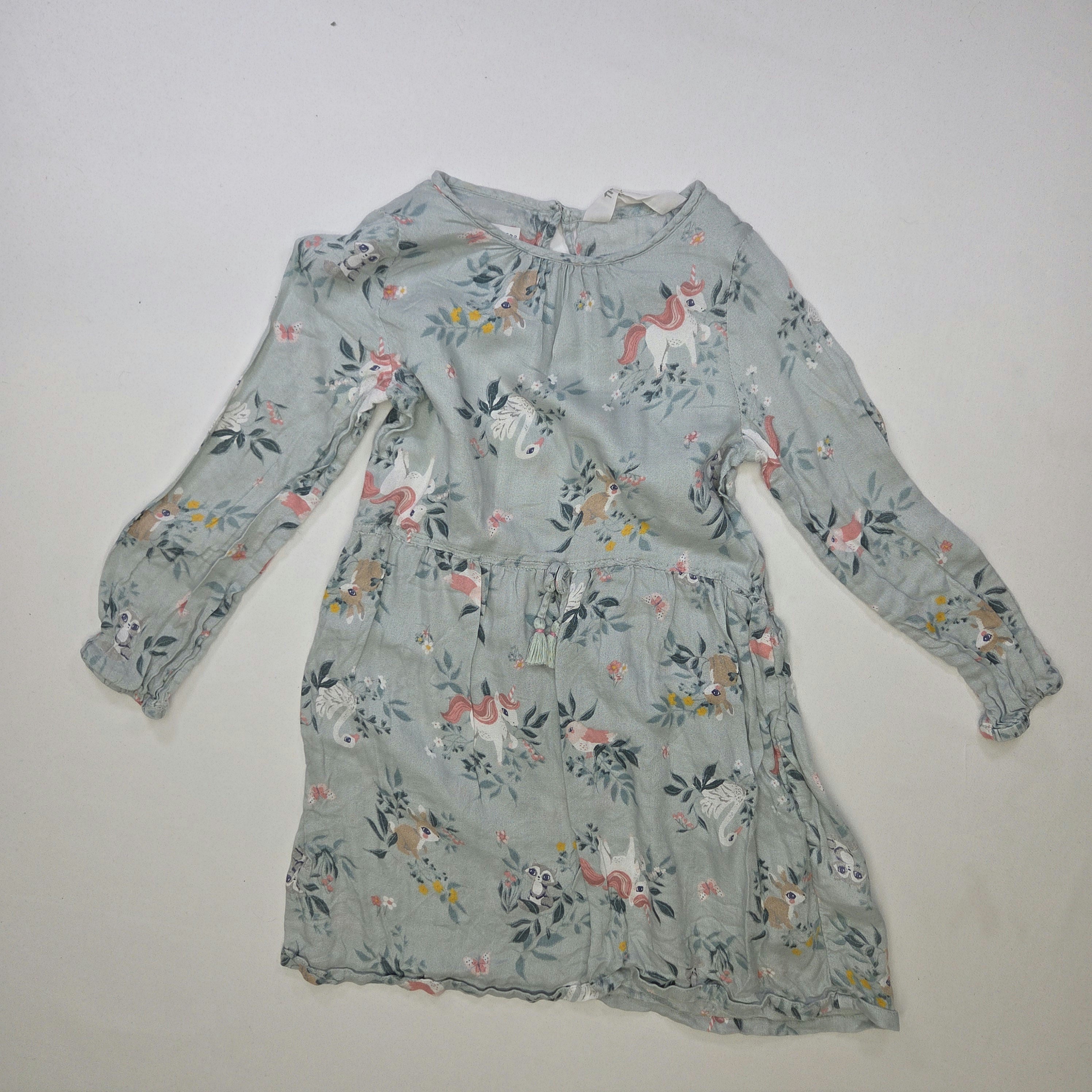 Questo incantevole vestito a maniche lunghe è perfetto per le piccole sognatrici! Realizzato in un tessuto leggero e morbido, presenta un delizioso motivo floreale con adorabili unicorni e animali che porteranno un tocco di magia nel guardaroba. Il dolce colore verde menta e le maniche arricciate aggiungono un tocco romantico, rendendolo ideale per ogni occasione, da una festa in giardino a un pomeriggio di giochi. Facile da indossare grazie alla chiusura sul retro, questo vestito usato è in buone condizioni e pronto per nuove avventure! Un capo che trasformerà ogni giorno in una favola!