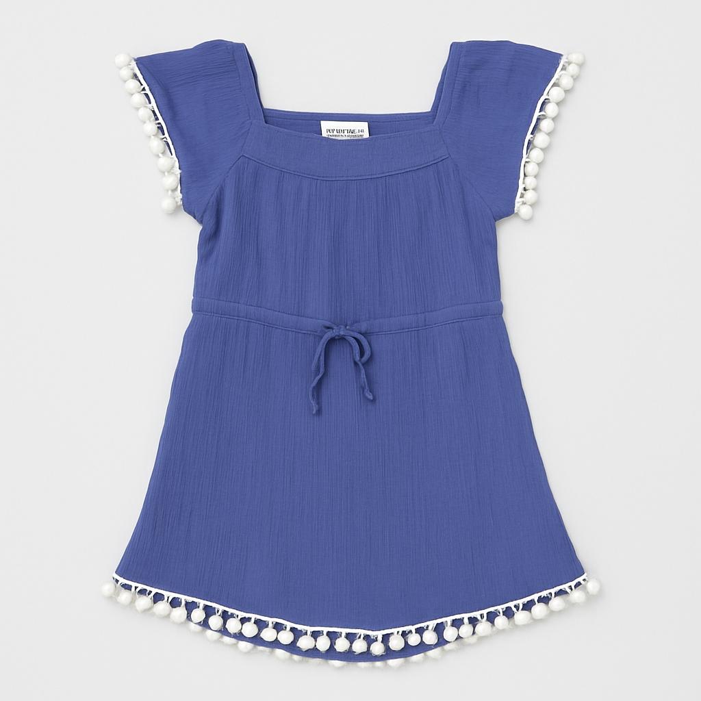 Questo adorabile vestito azzurro è perfetto per le piccole esploratrici! Realizzato in leggero tessuto di cotone, offre freschezza e comfort durante le calde giornate estive. Le maniche a volant sono adornate da soffici pompon bianchi, che aggiungono un tocco giocoso e femminile. Il cordoncino in vita permette di adattare il vestito per un fit perfetto, valorizzando la silhouette della tua bambina. Anche se è un capo usato, è in ottime condizioni e pronto per avventure indimenticabili! Un must-have per un look estivo da sogno!