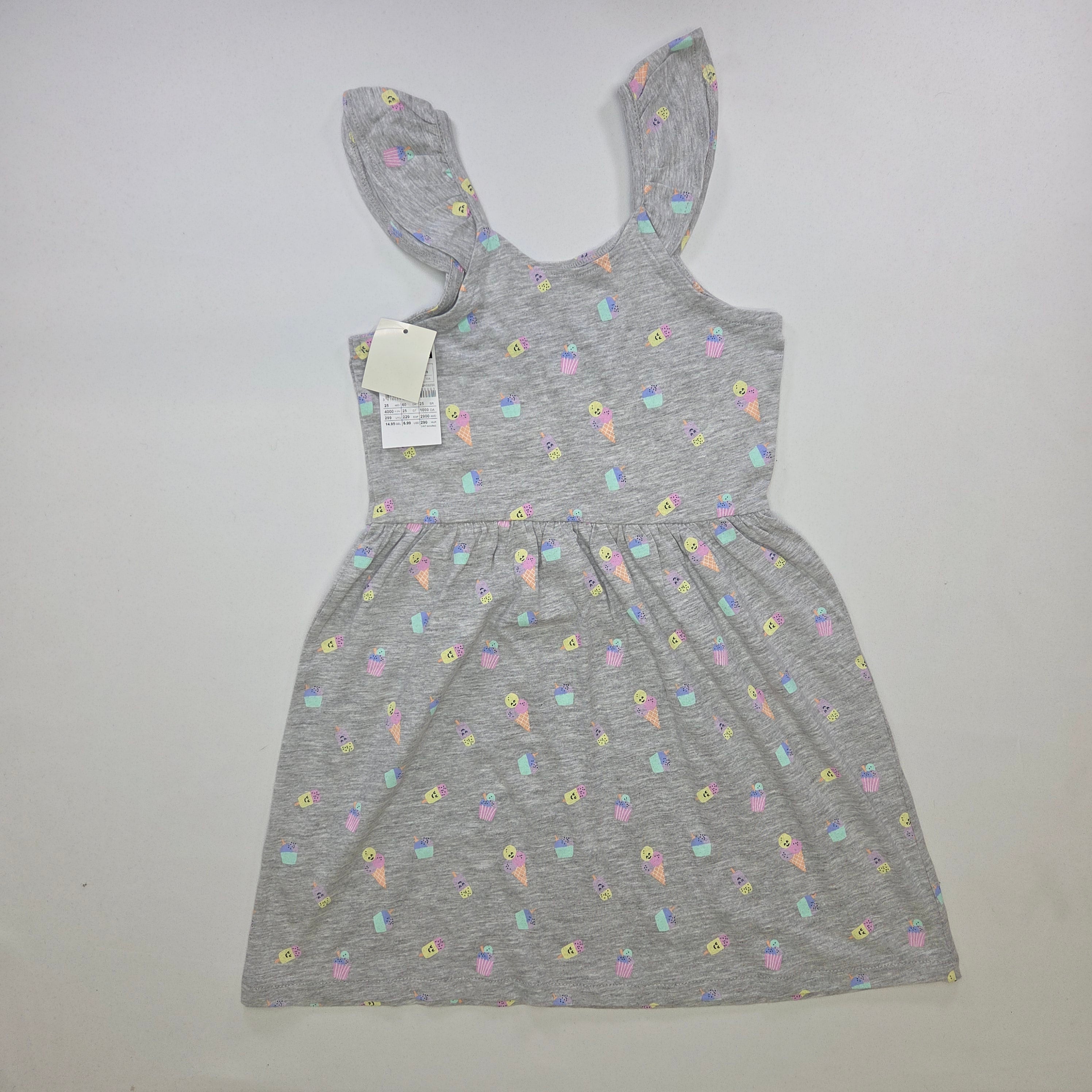 Delizioso vestitino grigio in cotone perfetto per le piccole principesse! Decorato con un vivace motivo di ghiaccioli colorati, questo abito presenta spalline a volant che aggiungono un tocco di dolcezza. La gonna ampia permette libertà di movimento, rendendolo ideale per le giornate di gioco o occasioni speciali. Nonostante sia usato, si presenta in ottime condizioni, pronto a far brillare il guardaroba della tua bimba con stile e allegria! Perfetto per le avventure estive!