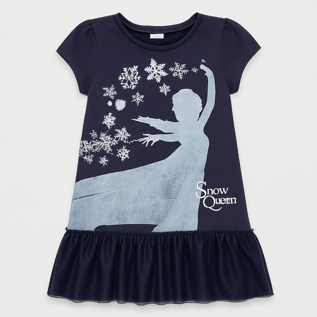 Questo incantevole abito ispirato a "Frozen" porterà un tocco di magia nel guardaroba della tua piccola! Con una base blu scuro, la maglietta presenta una dolce illustrazione di Elsa che sprigiona la sua magia tra fiocchi di neve. La gonna in tulle nera aggiunge un effetto romantico e vaporoso, perfetto per giocare o per occasioni speciali. Le maniche corte e il tessuto morbido assicurano comfort e libertà di movimento. Nonostante sia usato, è in ottime condizioni per accompagnare le avventure delle piccole sognatrici! Un capo must-have per tutte le fan della regina delle nevi!