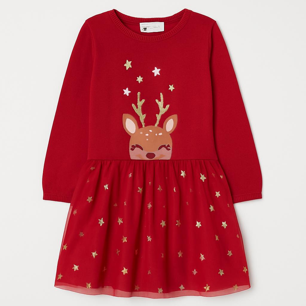 Questo adorabile abito di H&M è perfetto per le piccole che amano brillare! Con un caldo colore rosso, il vestito è decorato da un delizioso motivo di renna sul davanti, impreziosito da dettagli scintillanti. La gonna in tulle trasparente, adornata da stelle dorate, aggiunge un tocco magico e festivo. Le maniche lunghe lo rendono ideale per le giornate più fresche. Usato ma in ottime condizioni, questo vestito sarà il compagno perfetto per feste e occasioni speciali, assicurando che ogni piccola si senta una vera principessa!