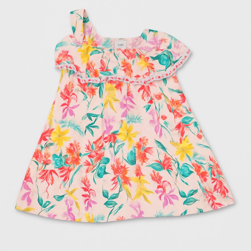 Questo incantevole vestito estivo per bambina è perfetto per le giornate di sole! Con un meraviglioso motivo floreale in tonalità vivaci di rosa, giallo e verde, cattura l'attenzione con il suo stile giocoso e allegro. La delicata scollatura arricciata e il leggero volant donano un tocco femminile e romantico, mentre il tessuto leggero assicura comfort e freschezza. Nonostante sia un capo usato, si presenta in ottime condizioni, pronto per accompagnare la tua piccola in avventure estive indimenticabili! Un must-have per ogni guardaroba estivo!