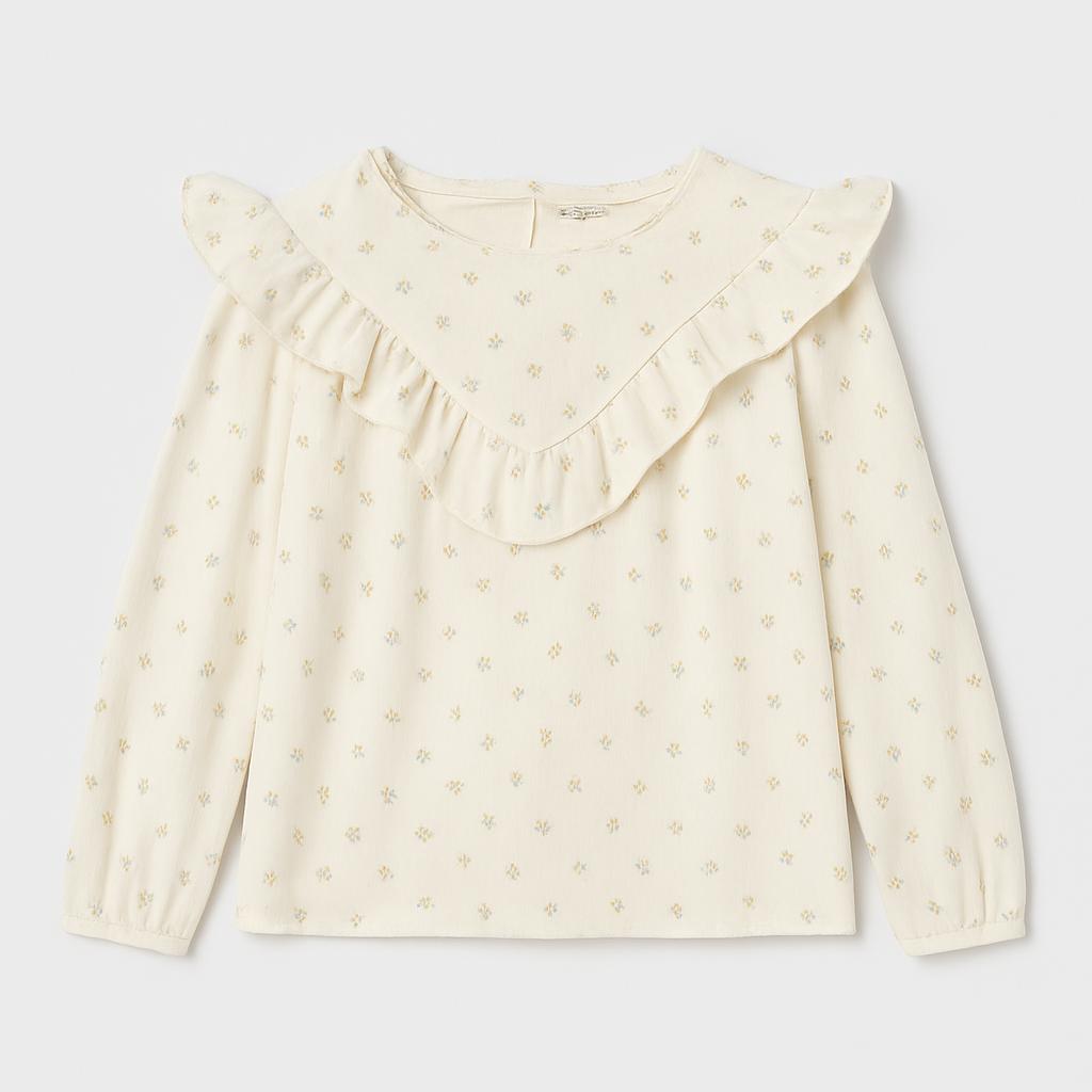 Questa adorabile blusa per bambina è il perfetto mix di eleganza e comfort! Realizzata in morbido tessuto, presenta un delicato motivo di piccoli fiori che aggiunge un tocco di freschezza. Le maniche lunghe e il colletto con volant rendono questo capo irresistibile e perfetto per occasioni speciali o per un look quotidiano chic. Anche se è un articolo usato, è in ottime condizioni ed è pronto per essere indossato dalla tua piccola con stile e gioia. Un'aggiunta incantevole al guardaroba!