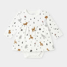 Questo adorabile vestitino per bambina è un capolavoro di dolcezza! Realizzato in morbido jersey, presenta un delizioso motivo a stampa con simpatici animali della foresta, come orsi e cervi, che trasmettono un'atmosfera incantata. Le maniche lunghe e la gonna ampia lo rendono perfetto per le fresche giornate, mentre il comodo body integrato assicura una vestibilità pratica. Anche se usato, il vestito è in ottime condizioni e pronto per accompagnare la tua piccola in mille avventure! Un capo che combina comfort e stile, ideale per ogni piccola esploratrice!