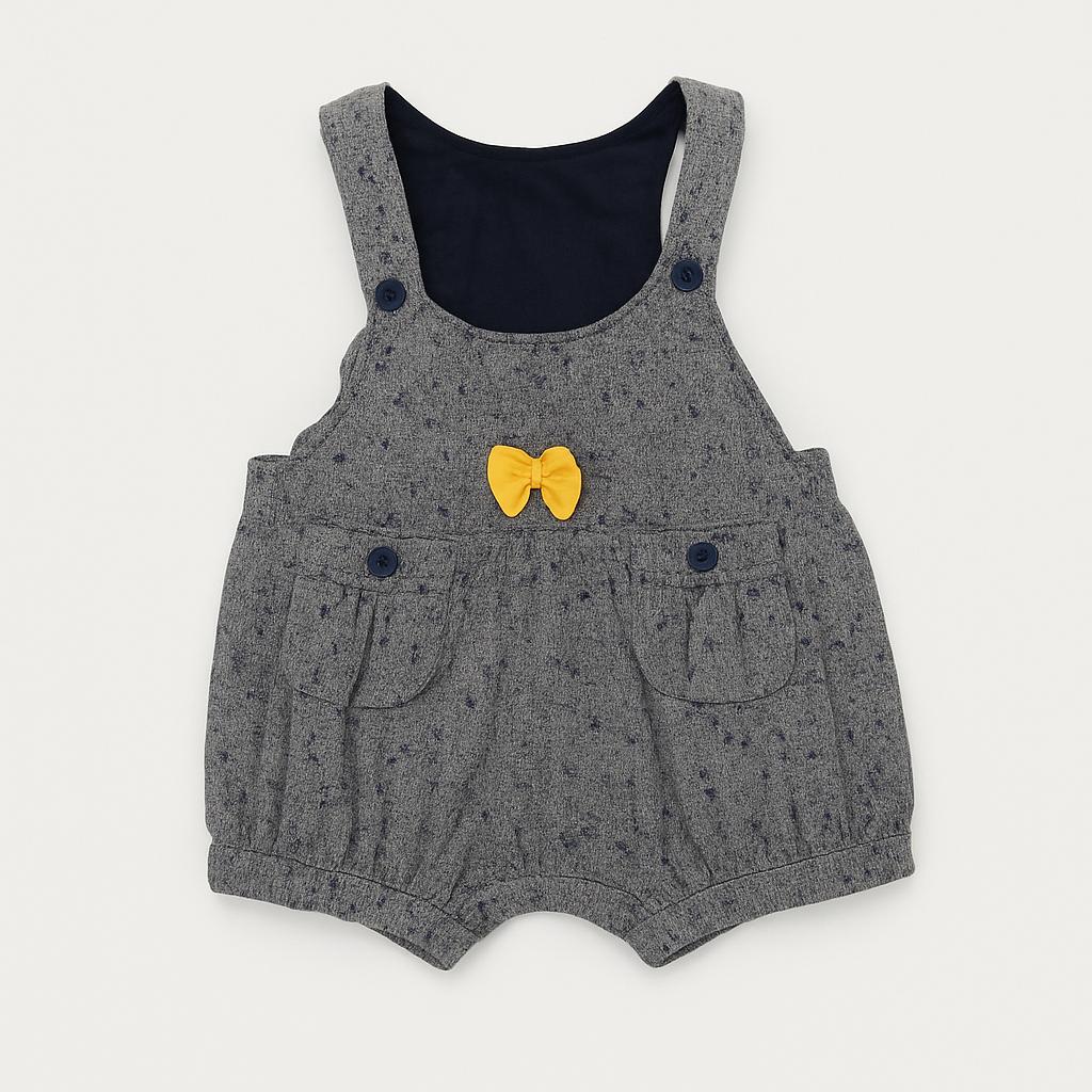 Questo adorabile salopette per bambini è un vero gioiellino per il guardaroba estivo! Realizzata in morbido cotone, presenta una fresca fantasia a righe blu su fondo grigio chiaro. I pratici bottoni sulla parte superiore e le tasche frontali rendono questo capo non solo comodo ma anche funzionale. Un delizioso fiocchetto giallo aggiunge un tocco di allegria e vivacità, rendendolo perfetto per le piccole esploratrici. Nonostante sia un capo usato, si presenta in ottime condizioni, pronto a regalare gioia e stile! Ideale per le giornate di sole e i giochi all'aperto, questa salopette sarà la scelta perfetta per ogni avventura!