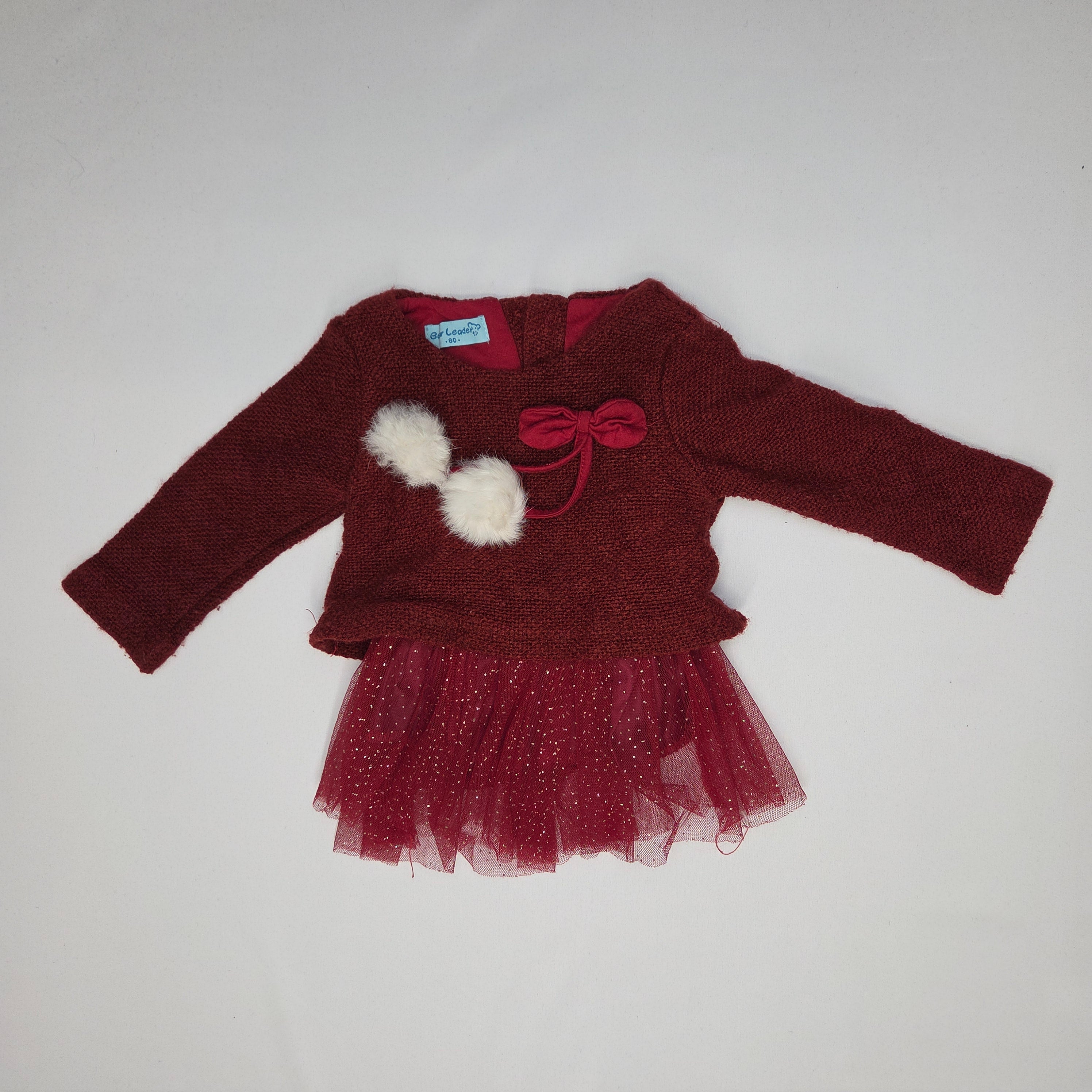 Questo adorabile completo di marca è perfetto per la tua piccola stella! La maglia rossa in morbido tessuto presenta un delizioso fiocco e due pompon bianchi che donano un tocco di divertente eleganza. La gonna in tulle trasparente con glitter scintillanti aggiunge un tocco di magia, rendendolo ideale per feste e occasioni speciali. Le maniche lunghe assicurano comfort e calore, mentre il design giocoso invita alla fantasia. Anche se è un pezzo usato, si presenta in ottime condizioni, pronto per accompagnare ogni passo della sua avventura. Un outfit da sogno per le piccole principesse!