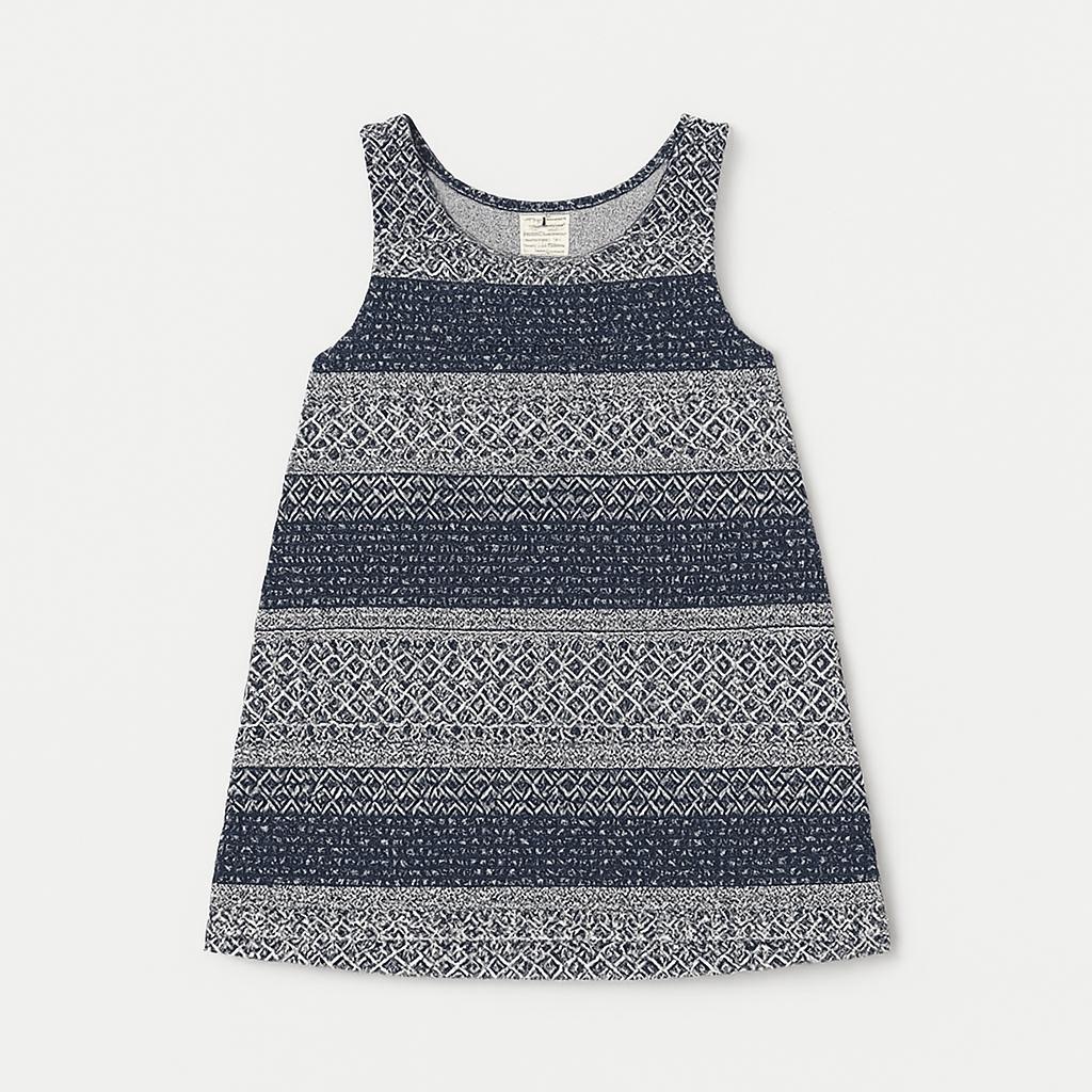 Questo adorabile vestitino estivo è perfetto per la tua piccola! Realizzato in leggero cotone, presenta un delizioso motivo a righe con pattern geometrici in blu navy e bianco. La sua vestibilità comoda e senza maniche lo rende ideale per le giornate calde, mentre la lunghezza a media rende questo abito versatile e pratico. Perfetto per piccole esploratrici, sarà il compagno ideale per giochi all'aperto o feste estive. Nonostante sia usato, si presenta in ottime condizioni, pronto a far brillare il guardaroba della tua bimba!